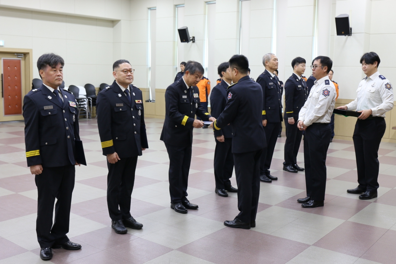 ○ 고성소방서는 11월 3일 오전 본서 대회의실에서 인사발령(승진6, 자체전보1)에 따른 임용장 수여식을 개최했다.