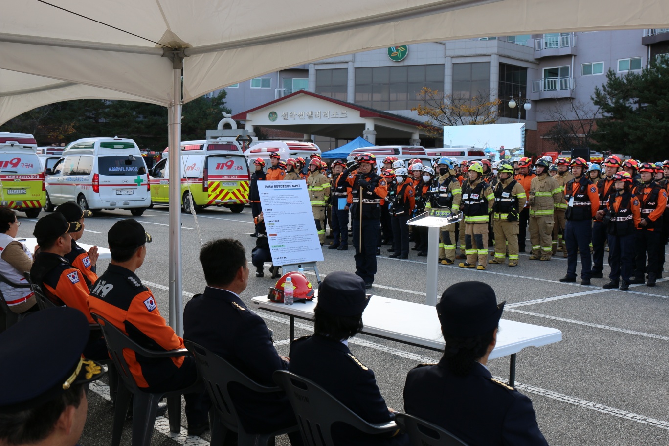 고성소방서는 11월 5일 오후 고성군 설악 썬밸리 골프리조트 일원에서 2025년 긴급구조종합훈련을 실시했다.