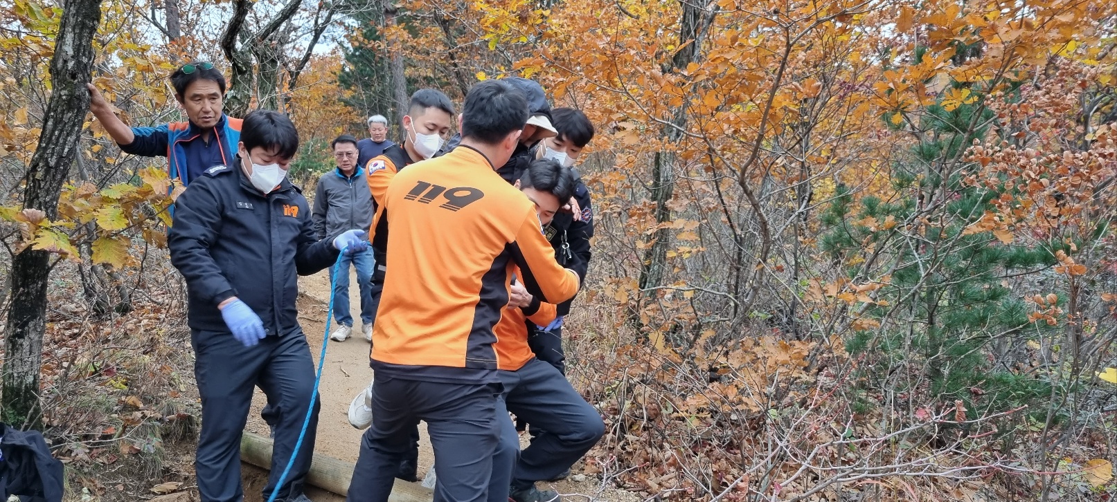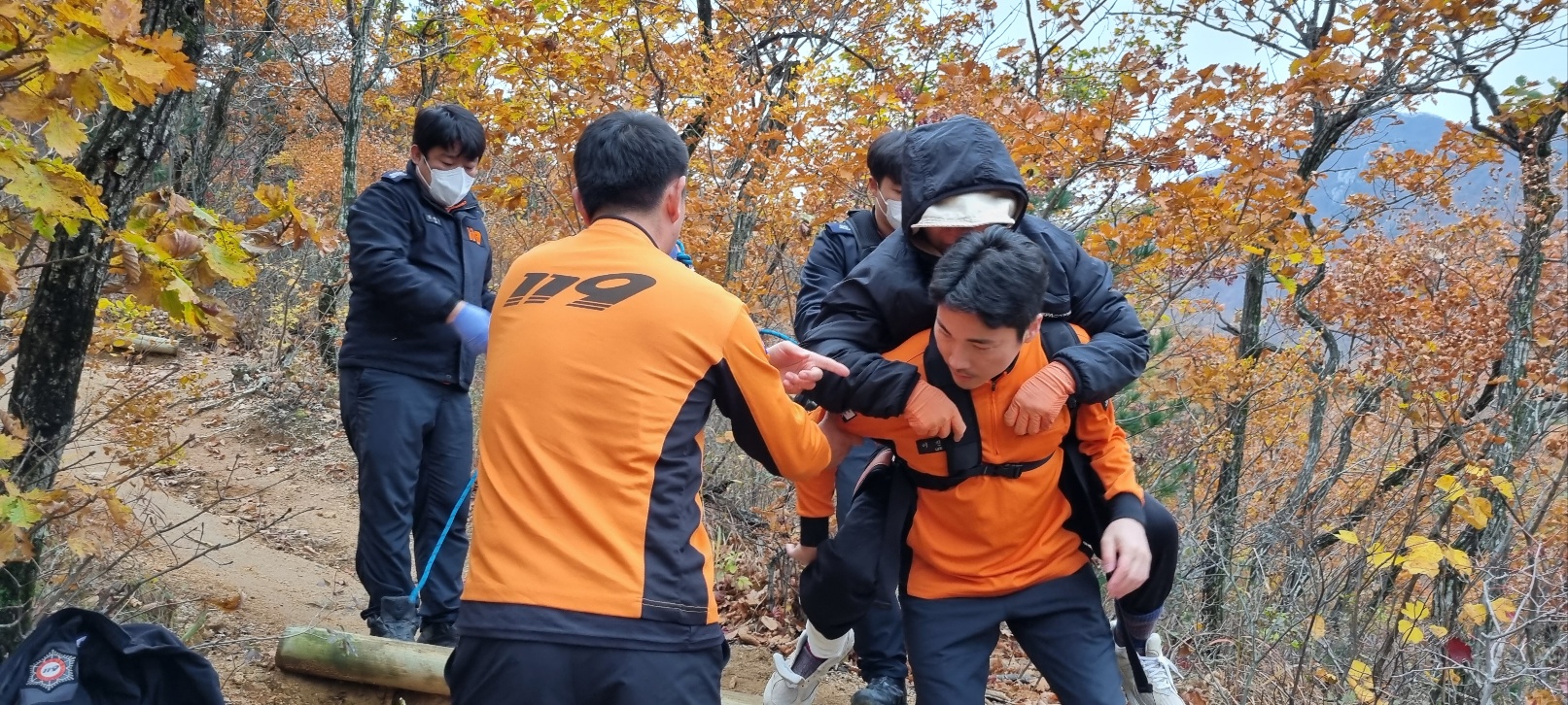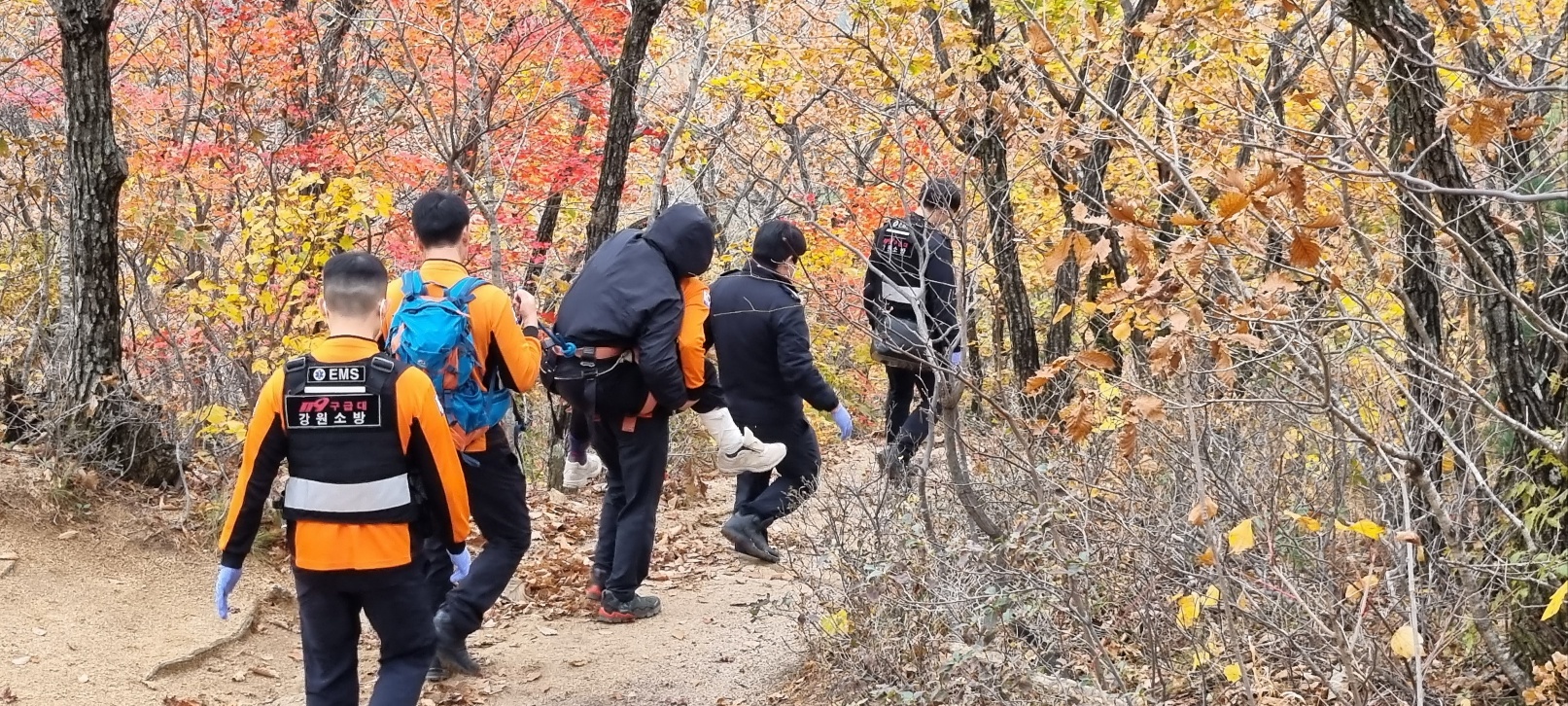 10/27일 설악산 -> 성인대-> 화암사 -> 원점회귀중 종점부근 발목골절-119 출동대원에게 감사 칭찬합시다