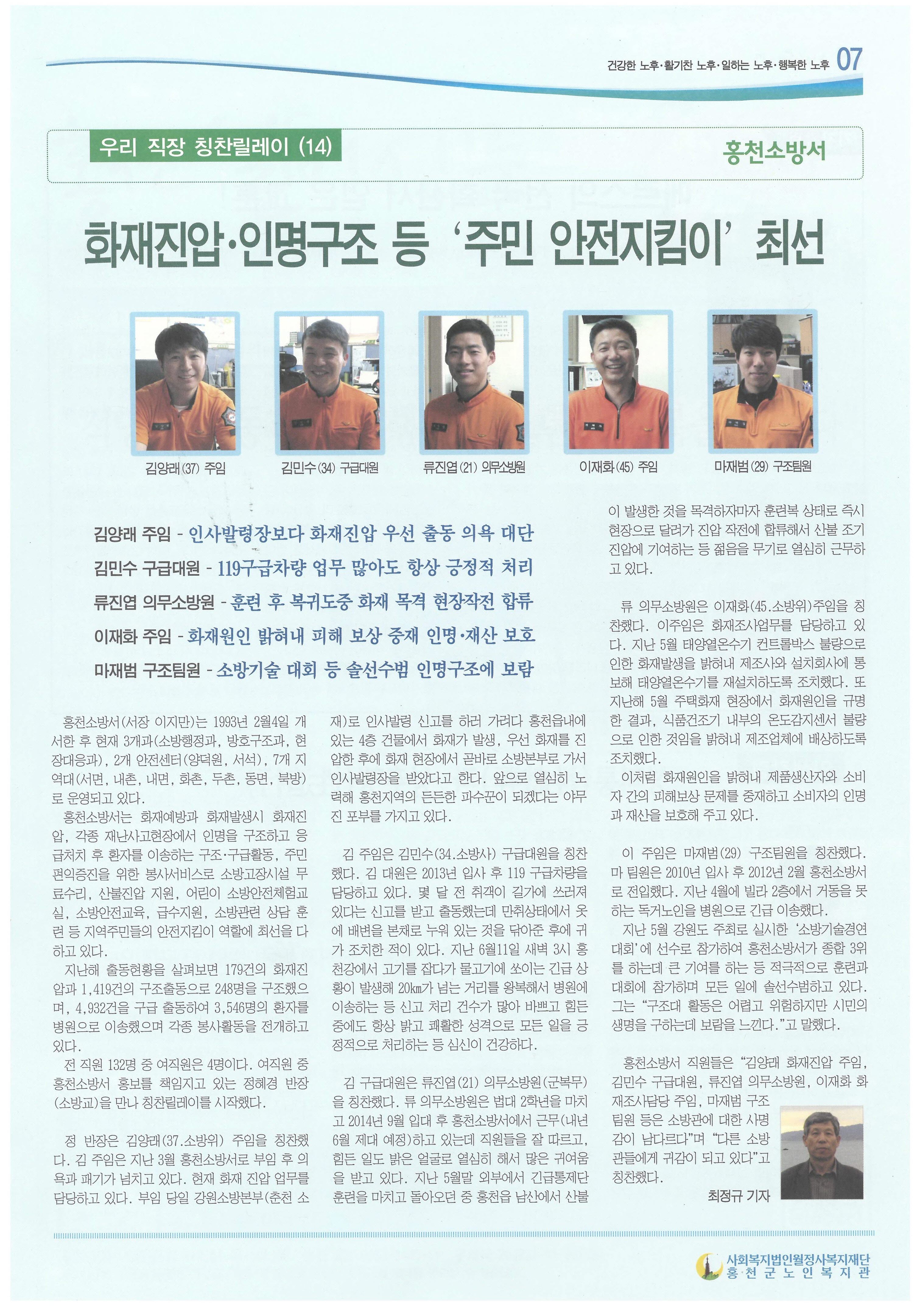 홍천실버신문 7월호 칭찬릴레이(홍천소방서편)