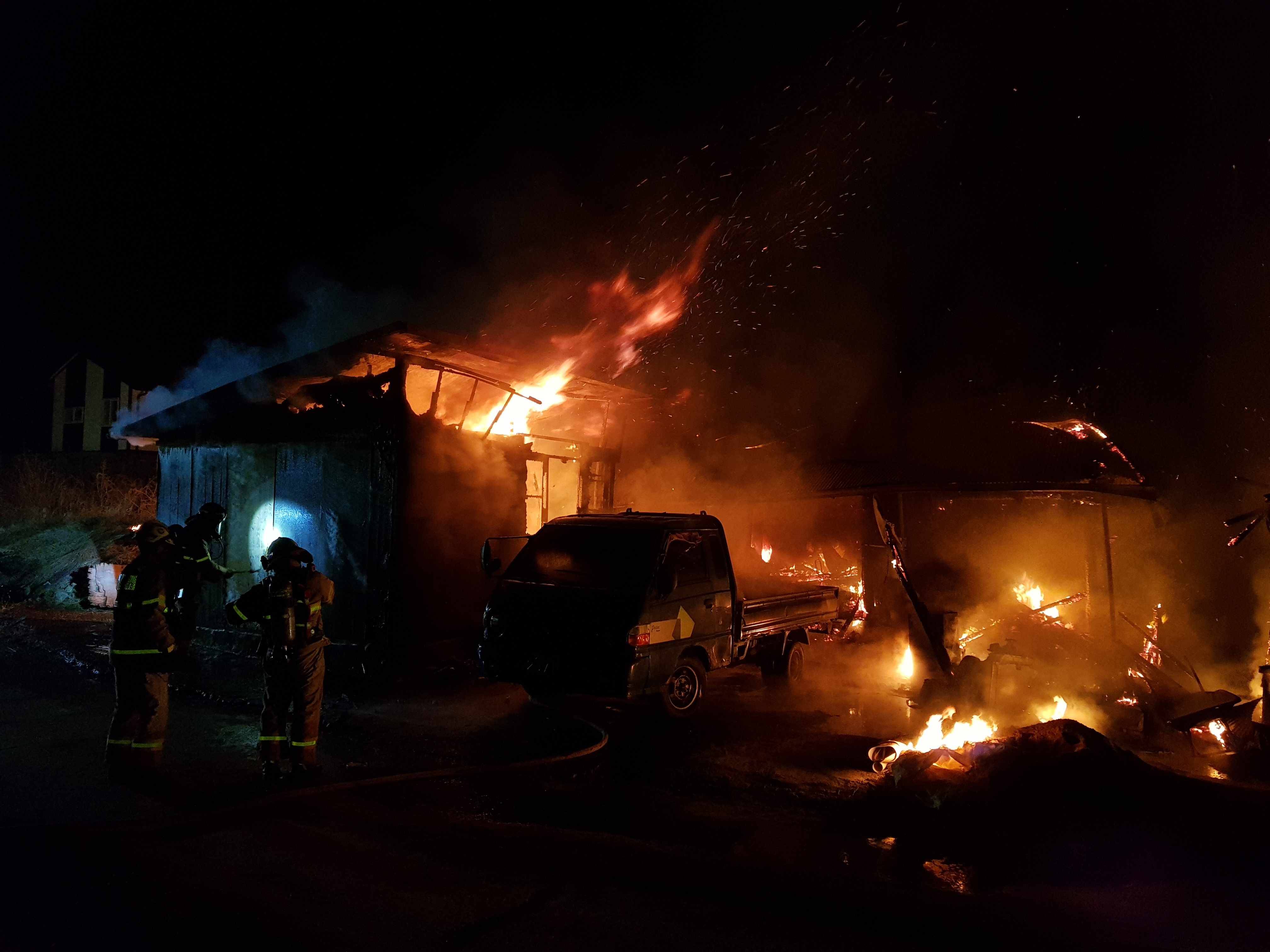 ○ 내 용 : 목조 함석지붕 등 2동 82㎡ 전소 및 1톤 포터 부분소(완진23:11분)