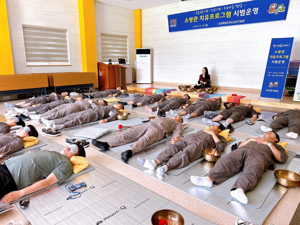 김숙자 서장을 포함한 소방서 직원 20명이 참석한 이번 프로그램의 주요 내용은 심신회복 몸살리기, 싱잉볼테라피, 에코염색 등이며, 참가자들은 몸의 자율신경 활성도 및 피로도를 확인하며 자신의 건강 상태를 점검하는 시간을 가졌습니다.