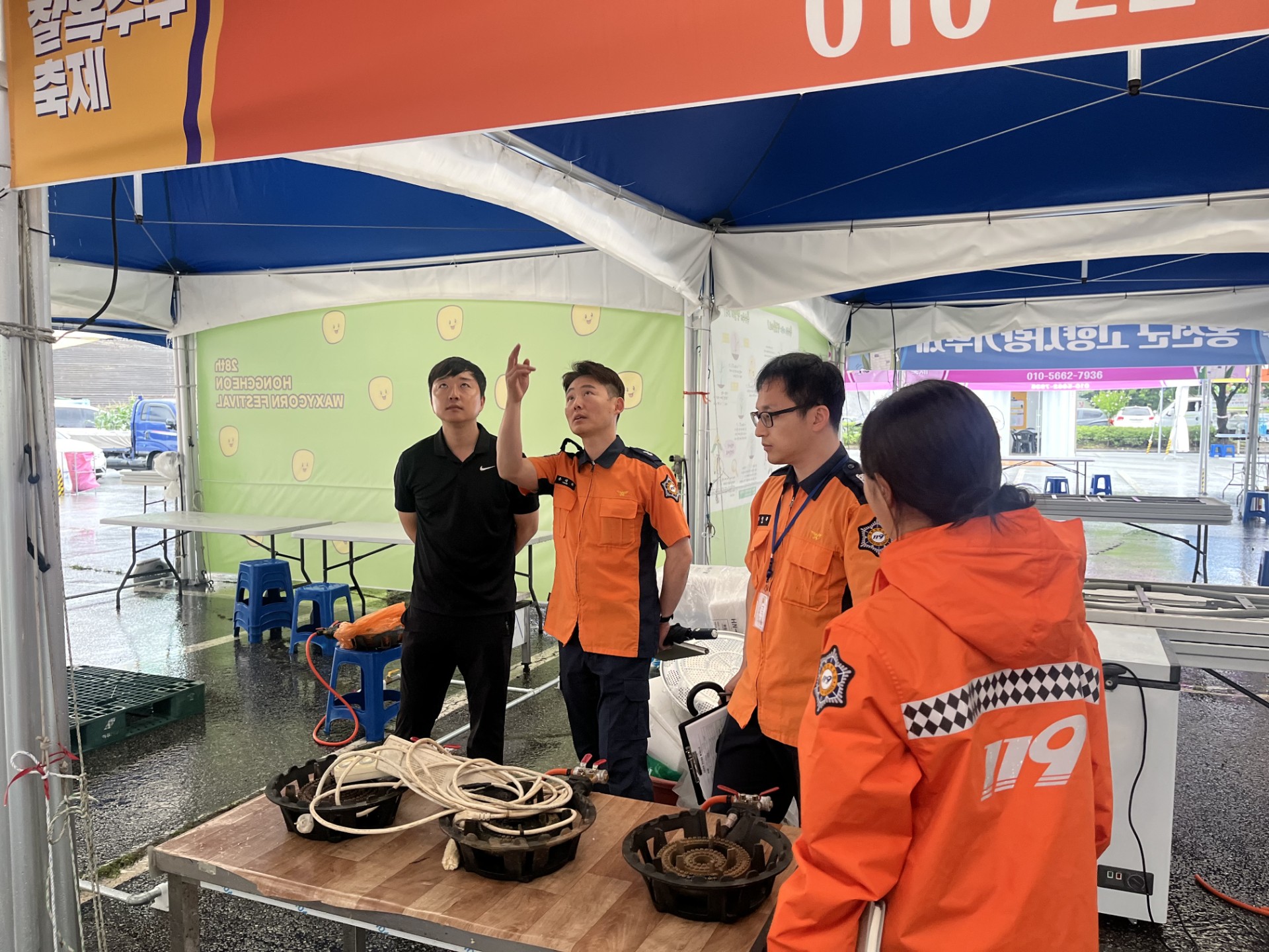 18일에는 홍천종합운동장 주차장 일원에서 유관기관 합동점검 및 관서장 현장 사전점검이 이루어졌습니다. 소화기 등 소화시설의 확보 상황과 위험물질 및 화기 관리의 적정성을 중점적으로 확인했습니다. 또한 소방차량의 진·출입 동선 확보와 주차요원 교육 상태, 행사장 피난통로 확보 여부 및 안전요원 배치의 적정성도 점검했습니다.