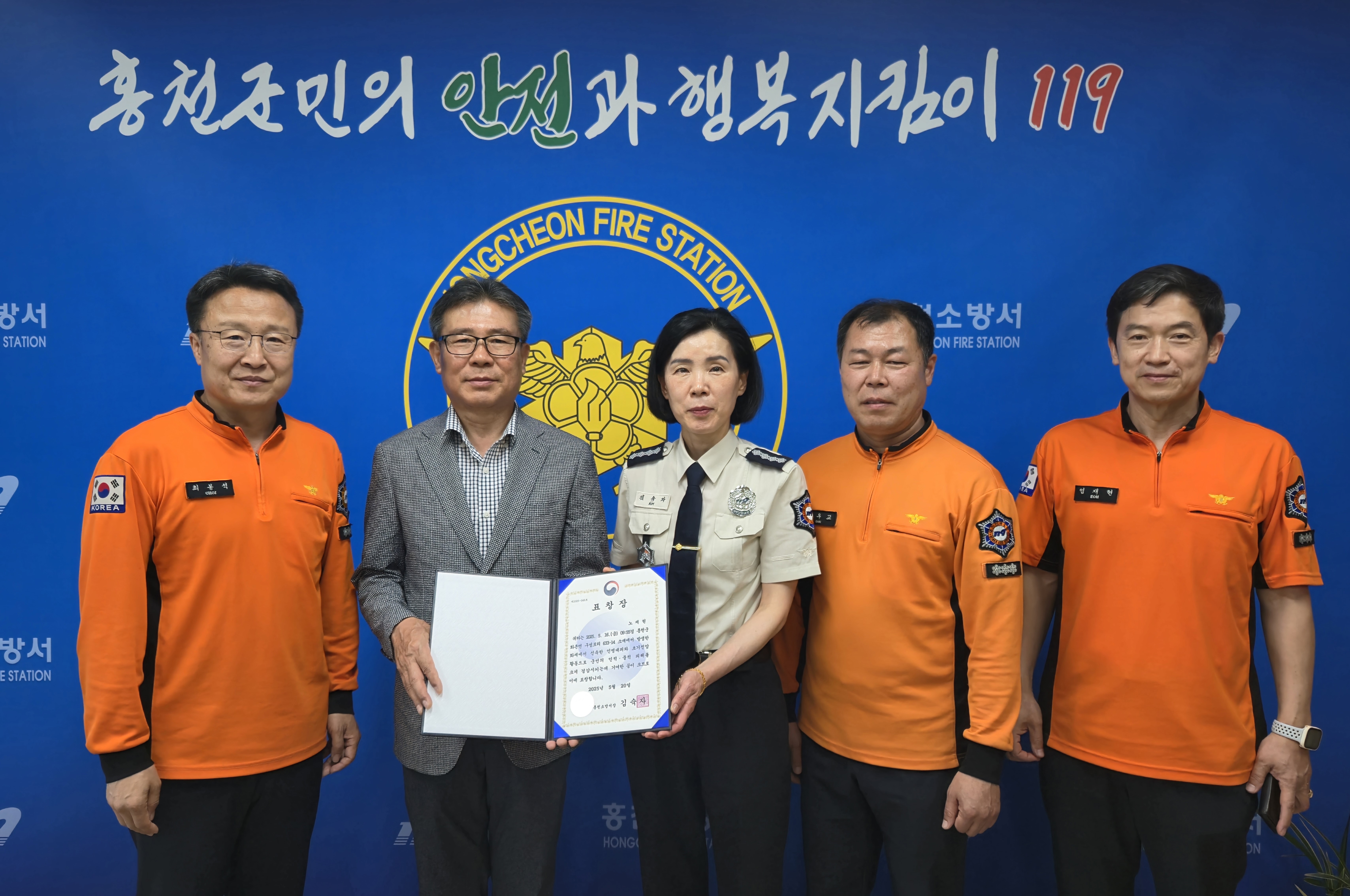 본문 시작강원 홍천소방서(서장 김숙자)는 5월 20일, 화재 현장에서 신속한 대처로 인명 및 재산 피해를 크게 줄인 공로로 홍천군 화촌면에 거주하는 노재현 씨에게 민간인 서장 표창을 수여했다고 밝혔다.