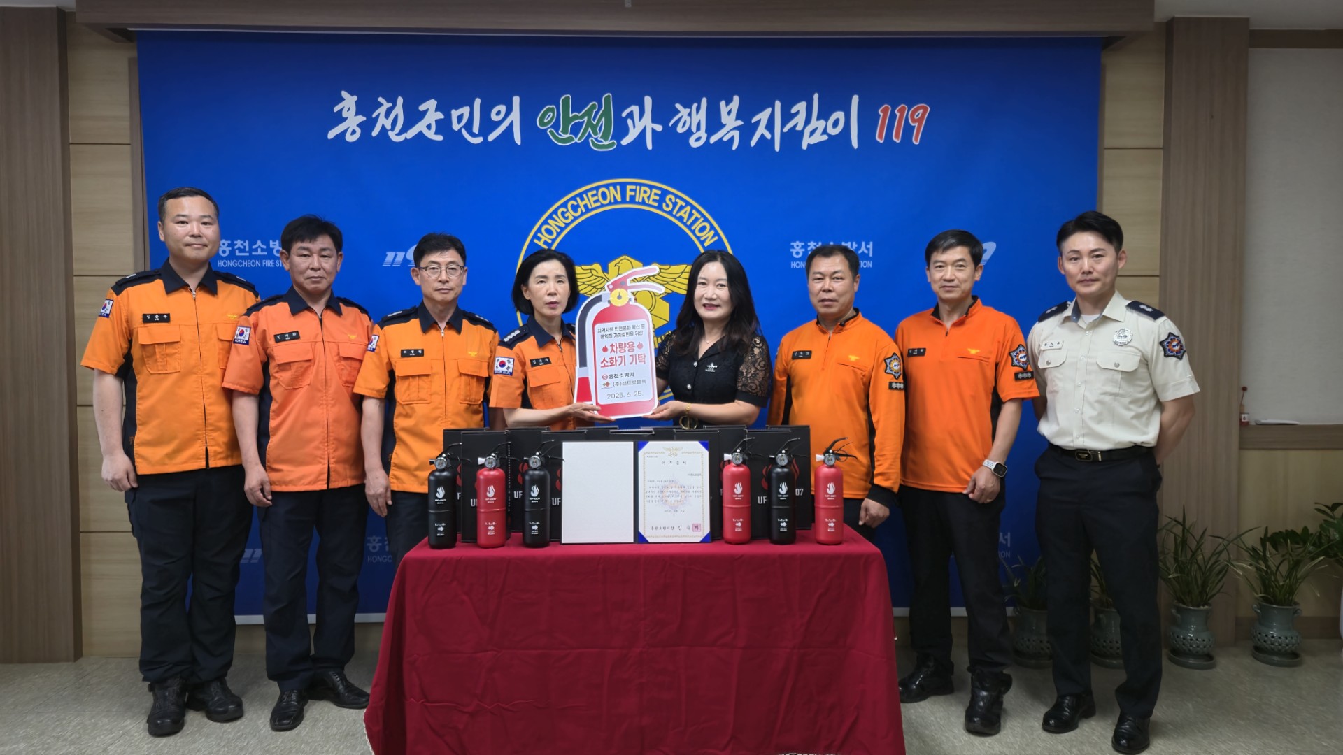 | 1133 | 지역사회 안전 지키는 나눔..샌드로블록(주), 홍천소방서에 차량용 소화기 227점 기탁 | 홍천홍보 | 2025-06-25 | 243 | |