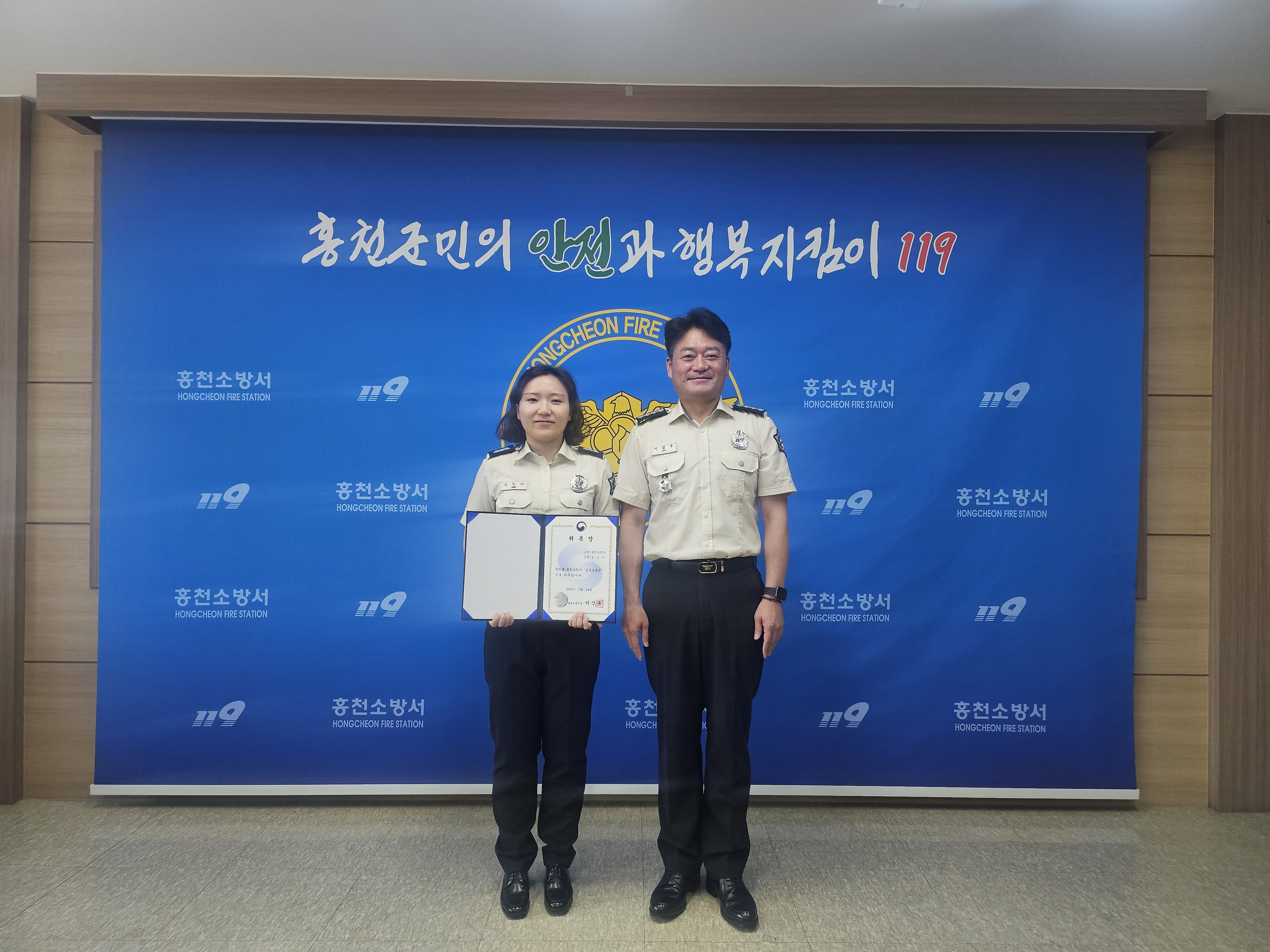 | 1128 | 홍천소방서, 화재 초기진압 유공자 노재현 씨에 민간인 서장 표창 수여 | 홍천홍보 | 2025-05-20 | 332 |