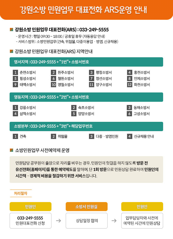 강원소방 민원업무 대표전화(ARS) 홍보안내