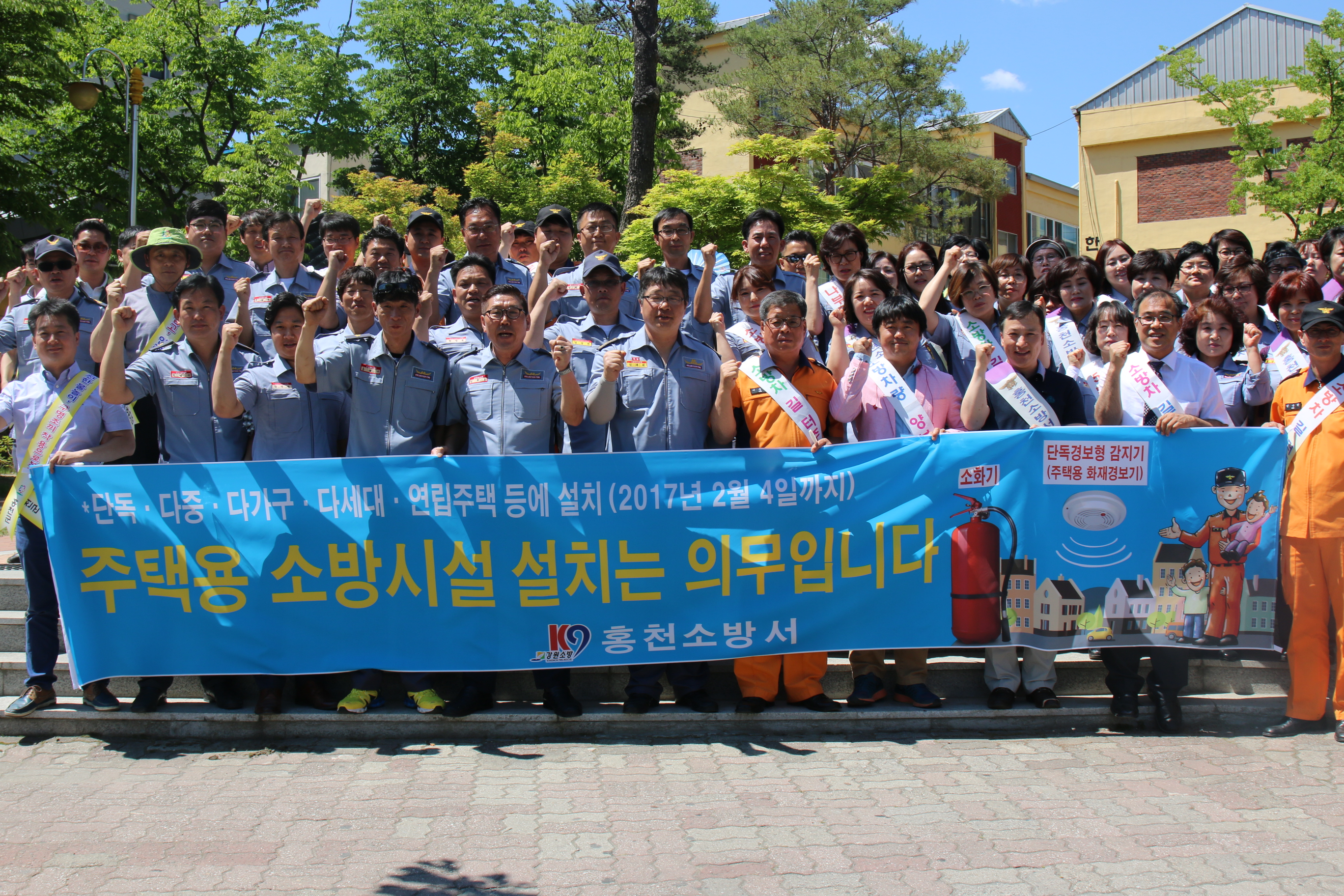 홍천소방서는 2(목) 오후 2시 꽃뫼공원에서 홍천군 시민 안전관리협의회 회장 박기현 외 회원 2명은 119생활안전지원단이 참여한 가운데 올해 소방업무 중점 추진분야인「주택용 소방시설 설치의무 대국민 홍보 캠페인」을 실시하였다.
