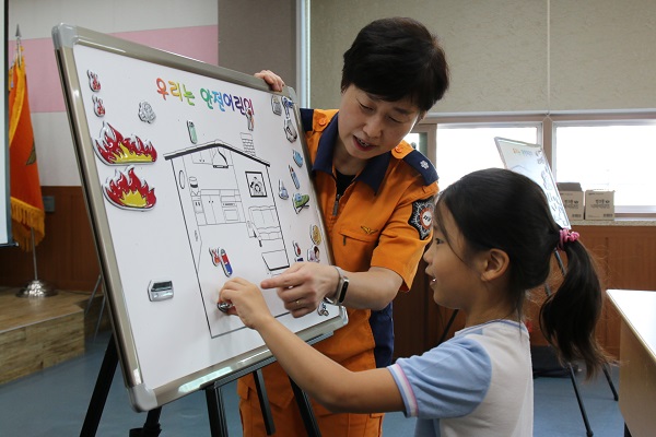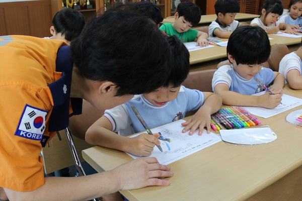 이번 교육은 어린이들이 집 안에서 생활할 때 지켜야할 안전수칙 등을 모형과 그림그리기로 배워보는 시간을 가졌다.