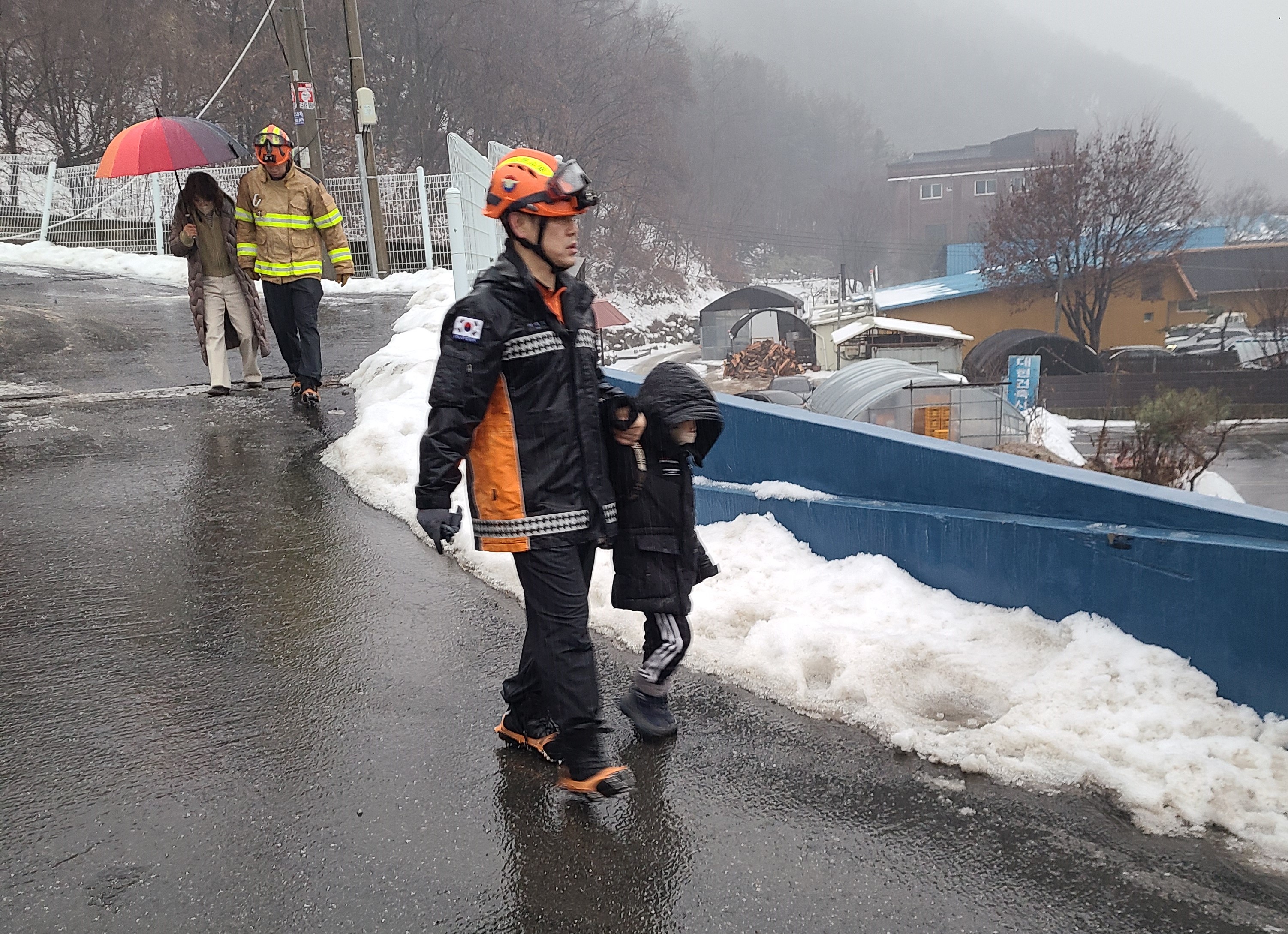 □ 도중 위태롭게 언덕길을 내려오던 여성1명, 어린이1명를 구조하고 오전 8시40분경 종료했다.