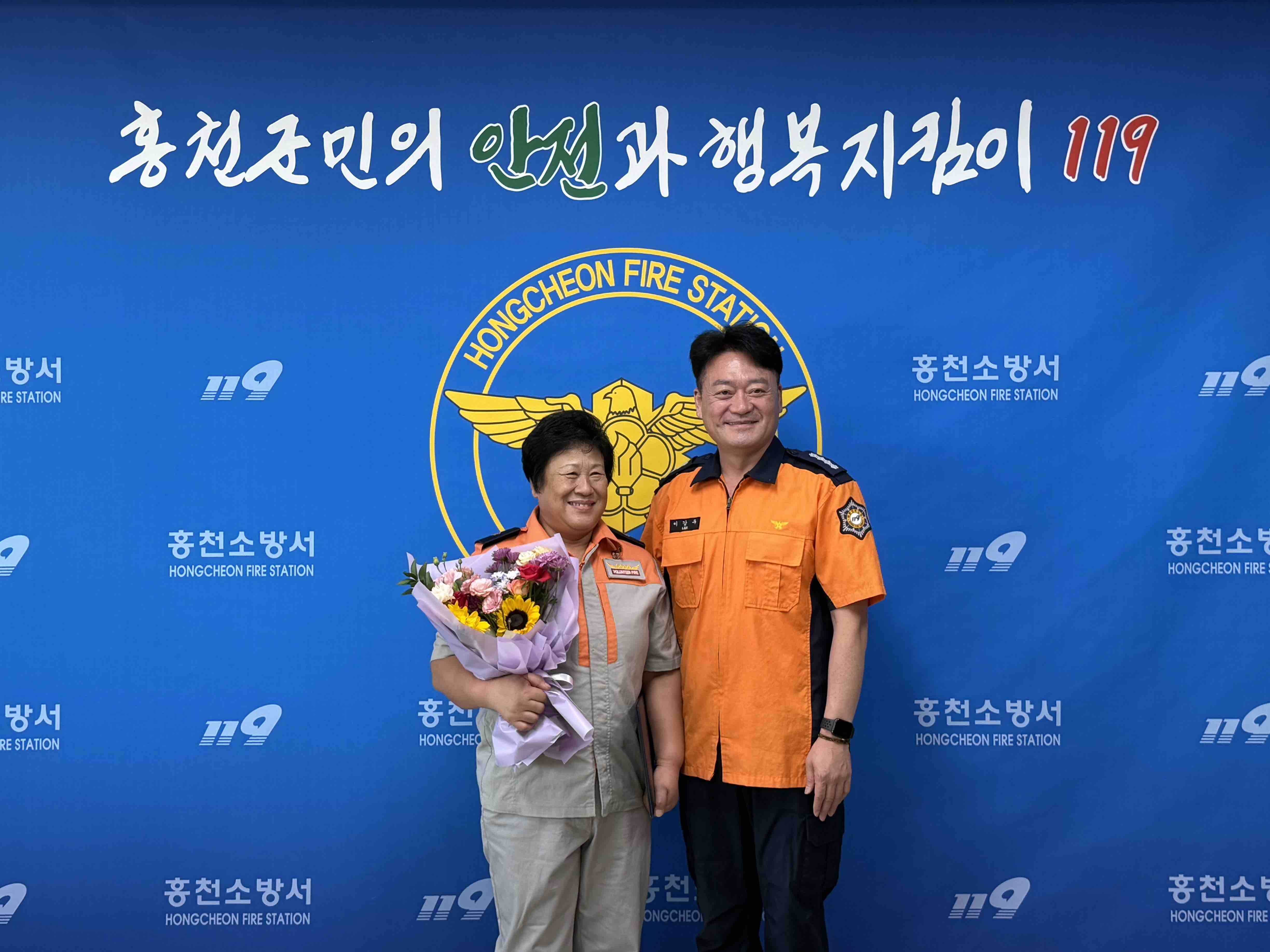 홍천소방서(서장 이강우)는 12일, 지난달 홍천군 화촌면 외삼포리에서 발생한 차량화재 현장에서 침착하고 신속한 초기 대응으로 연소 확대를 막은 공로를 인정해 화촌여성의용소방대(대장 김선희) 안수해 대원에게 소방서장 표창을 수여했다고 밝혔다.