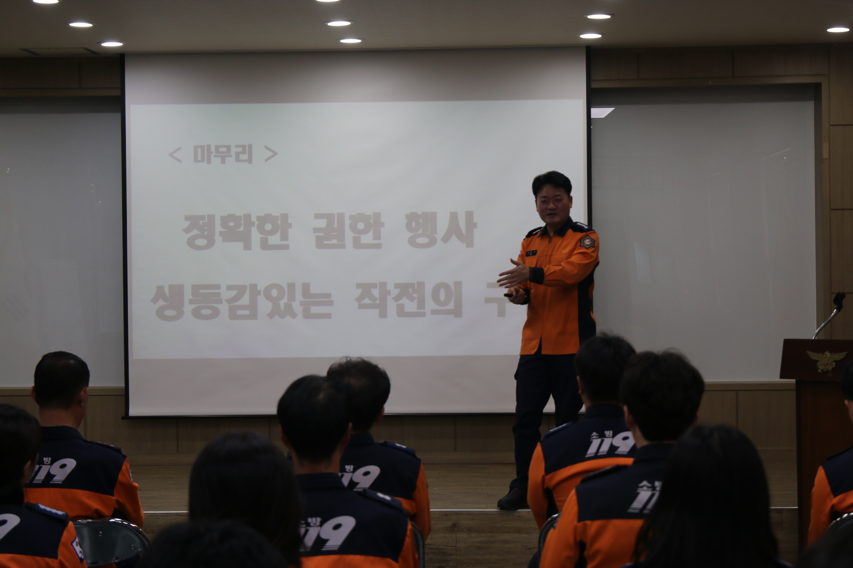 특히 이날 교육은 이강우 서장이 직접 강사로 나서 ▲긴급구조통제단의 역할 및 권한 ▲부서별 임무 숙지 사항 ▲다수 사례 분석 ▲ 현장 지휘 경험 공유 등을 중점적으로 다루며 직원들의 이해도를 높였다.