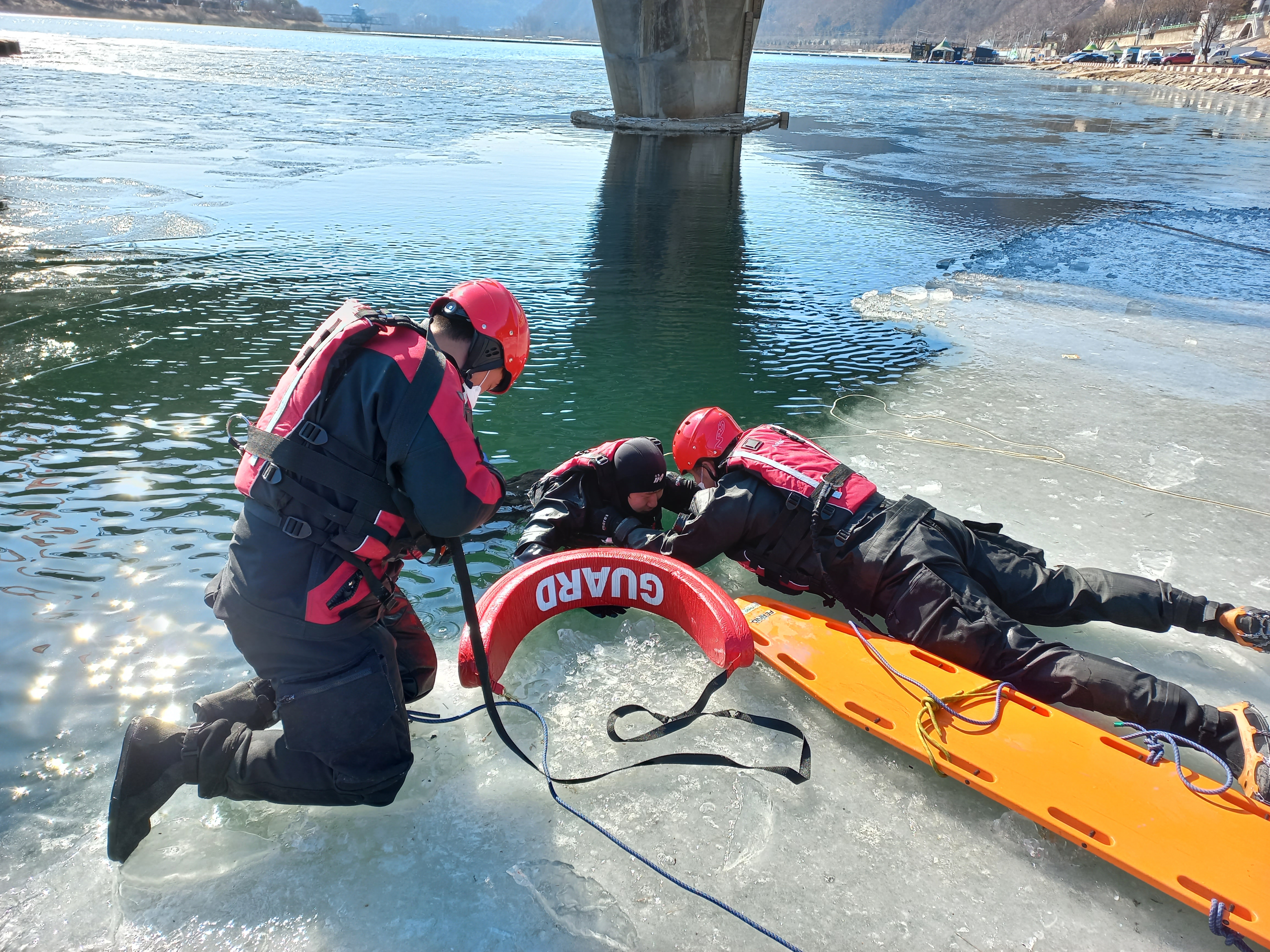 화천소방서, 해빙기 수난사고 대비 인명구조훈련 실시