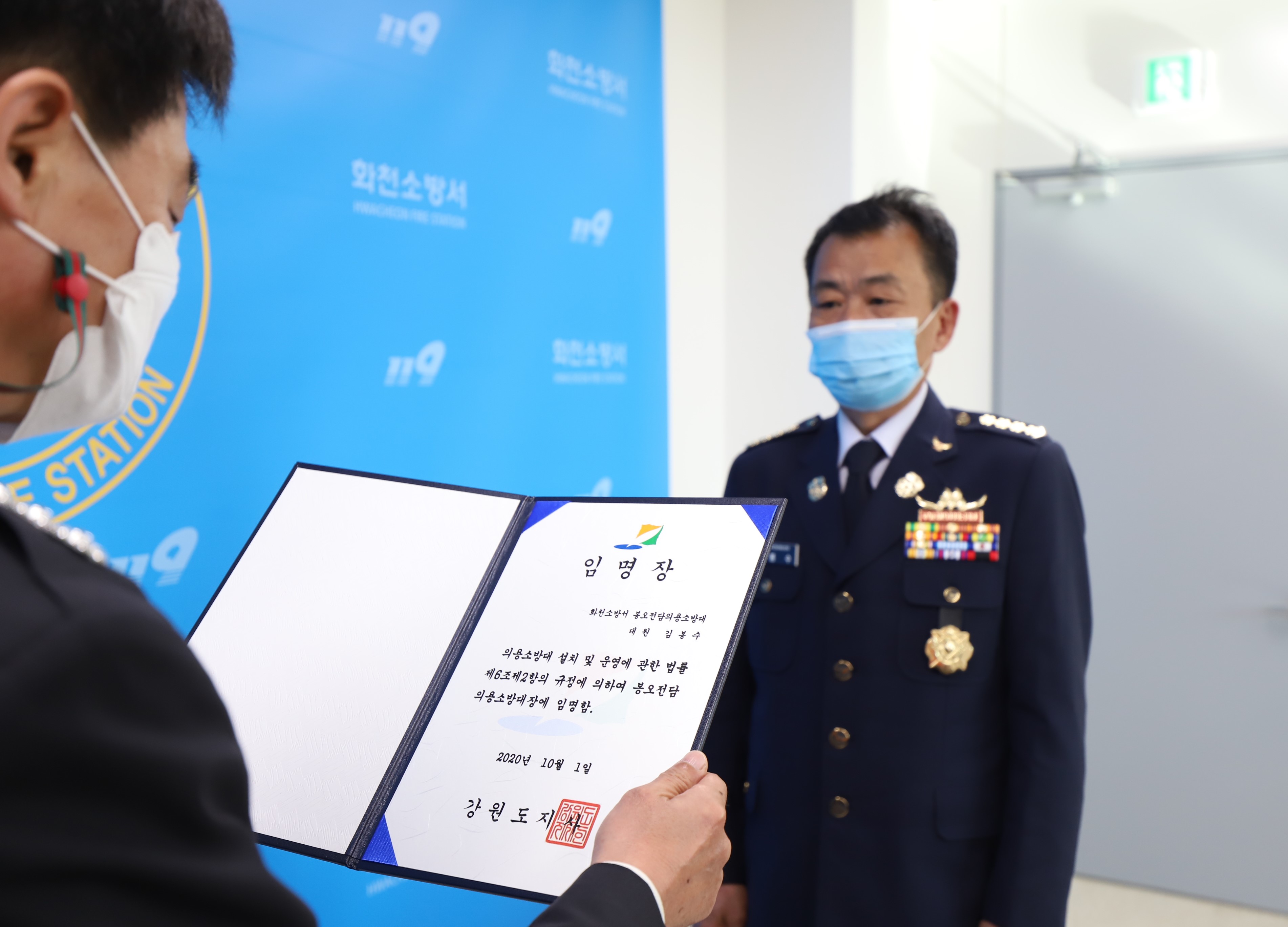 신임 봉오전담의용소방대장 임명장 수여식