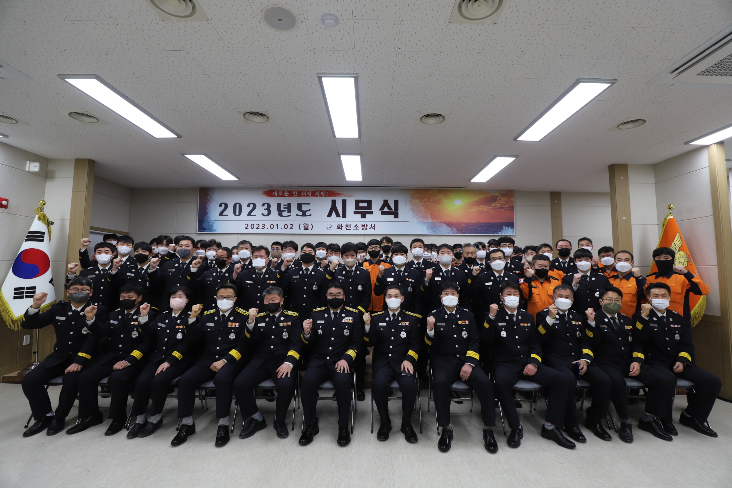 2023년 1월 2일 09시 30분 화천소방서 대회의실에서 시무식을 시행했습니다.