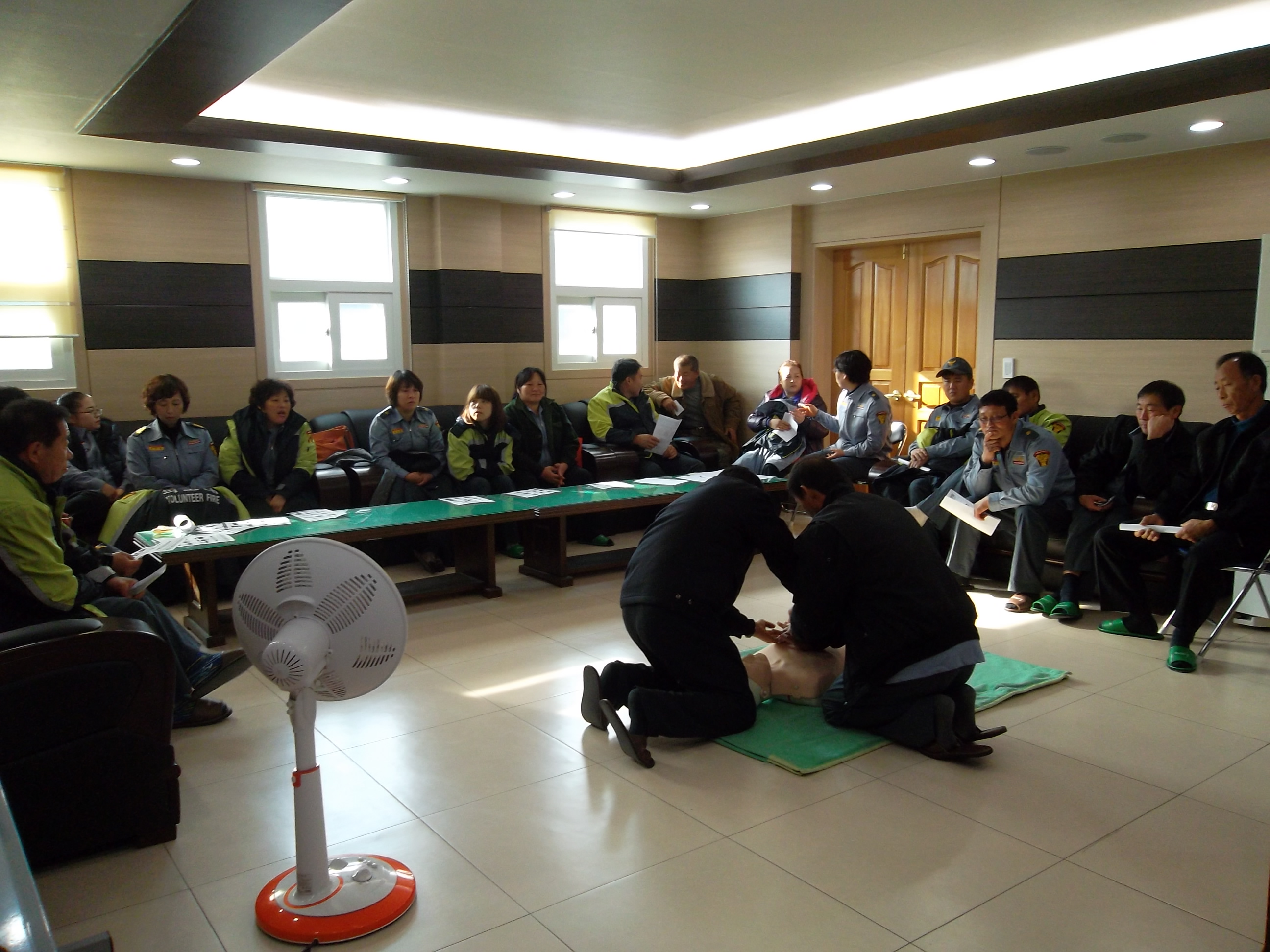 횡성소방서(서장 조근희) 서원지역대에서는 11.12.14(수) 각 남녀 대장님이 참석한 가운데 추가(보수)교육을 실시하였습니다. 추운 날씨에도 많은 대원들이 참석했고, 횡성센터장님의 특별 교육과 CPR 실습을 하였습니다.