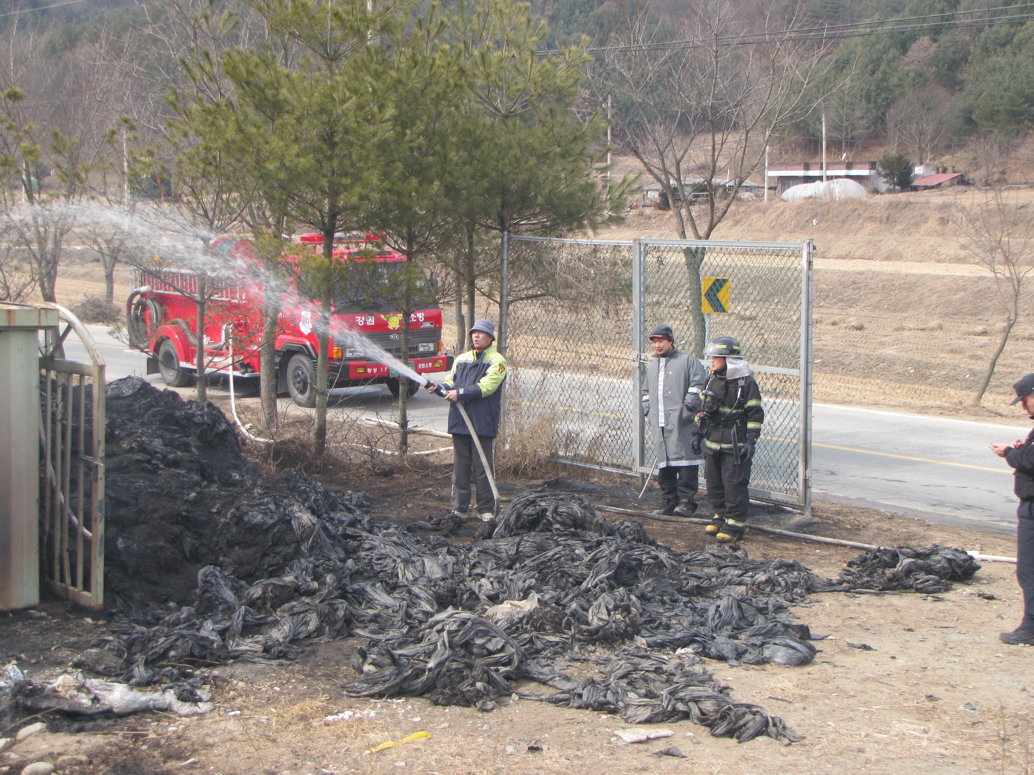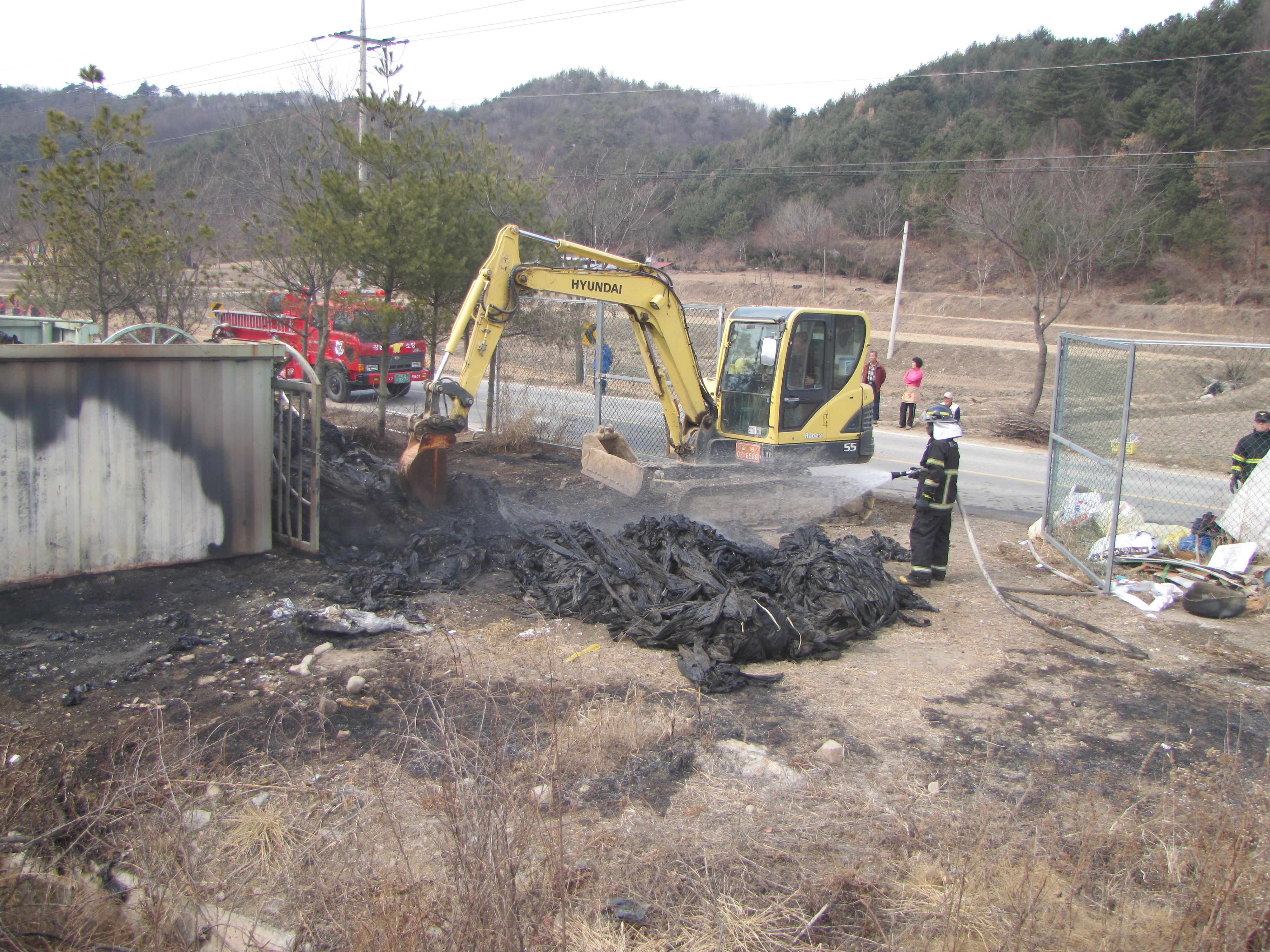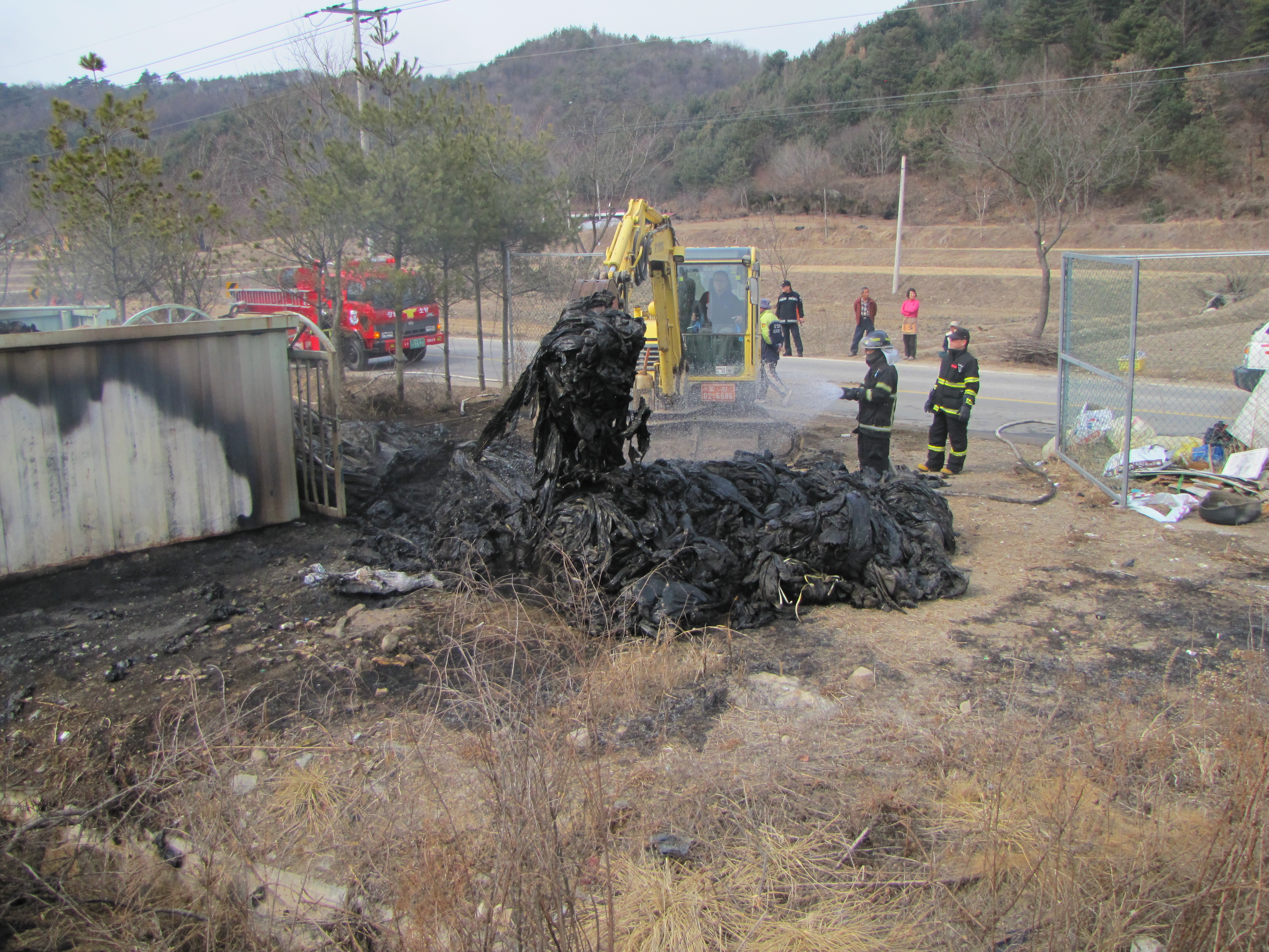 청일면 유평리 폐비닐수집장 화재진압