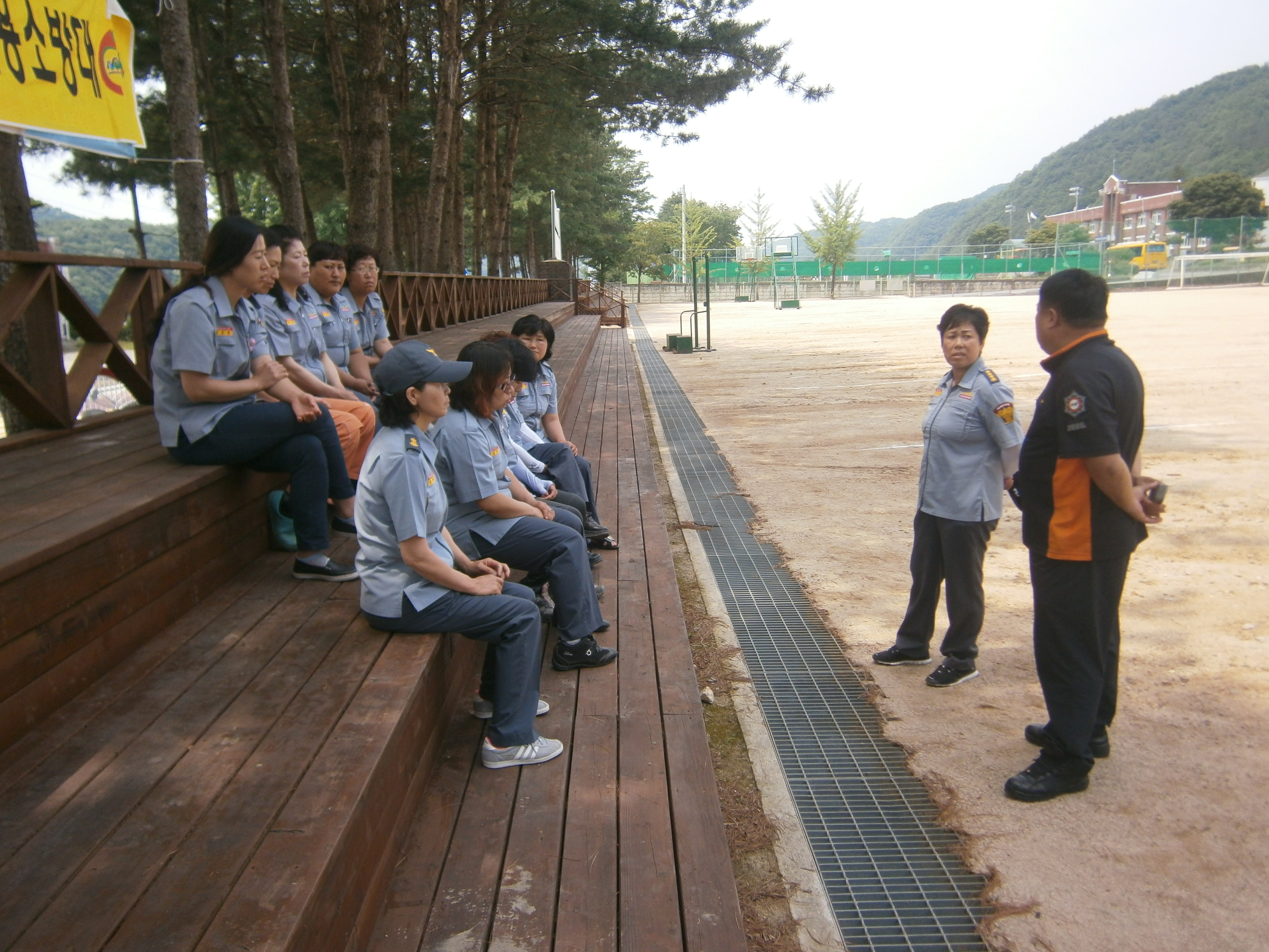 6월 18일 청일여성소방대 대장(이명순) 외 대원들은 청일중학교 운동장에서 6월 정기교육을 실시하였습니다. 심폐소생술(C.P.R)등 구급에 필요한 여러가지를 배웠습니다.