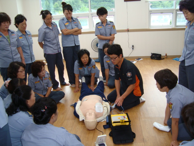 심폐소생술 + 자동 제세동기 사용법 교육을 하였습니다.