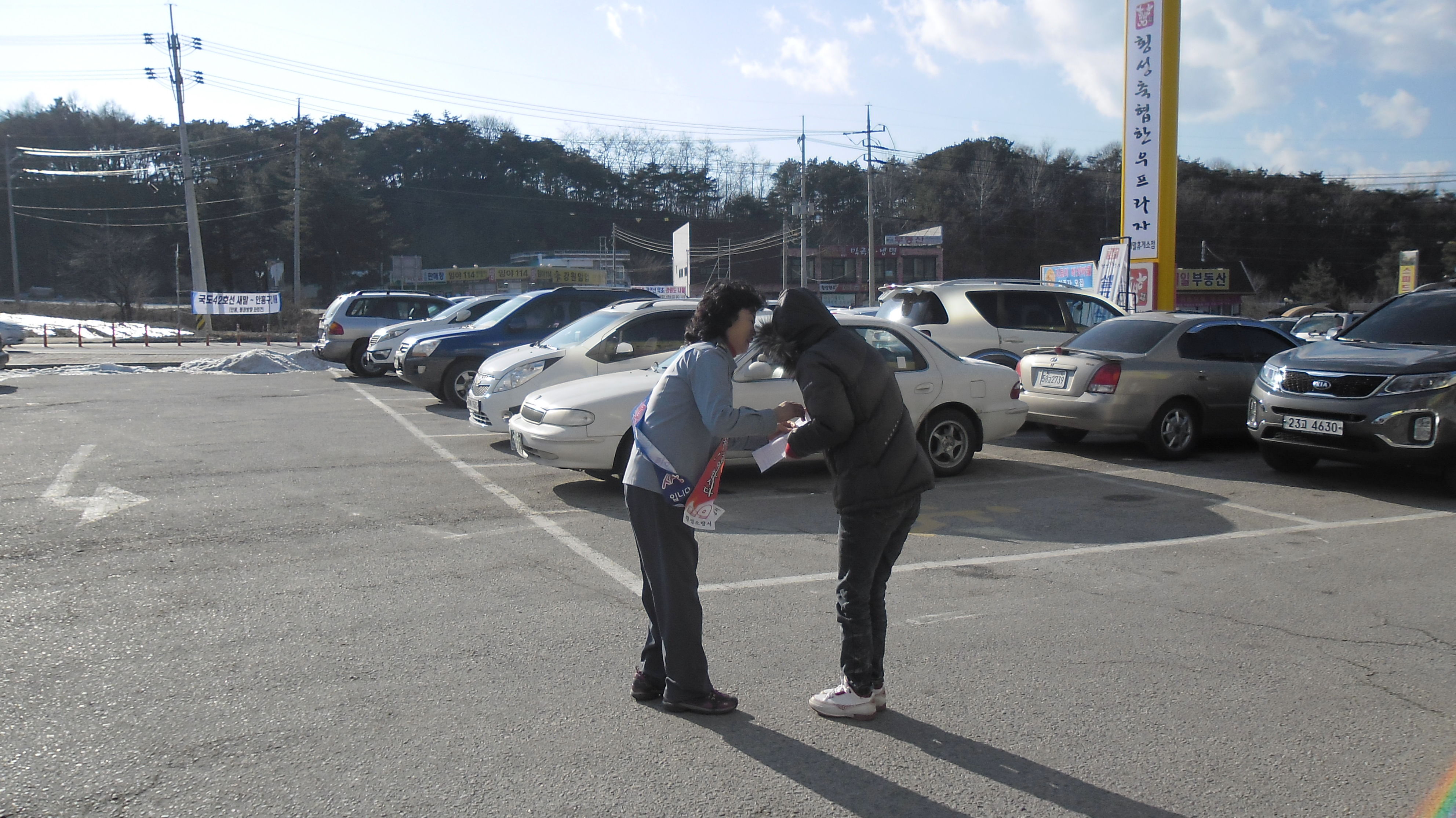 우천 여성대가 갑자기 추워진 날씨에 산불 조심 캠페인을 하였습니다