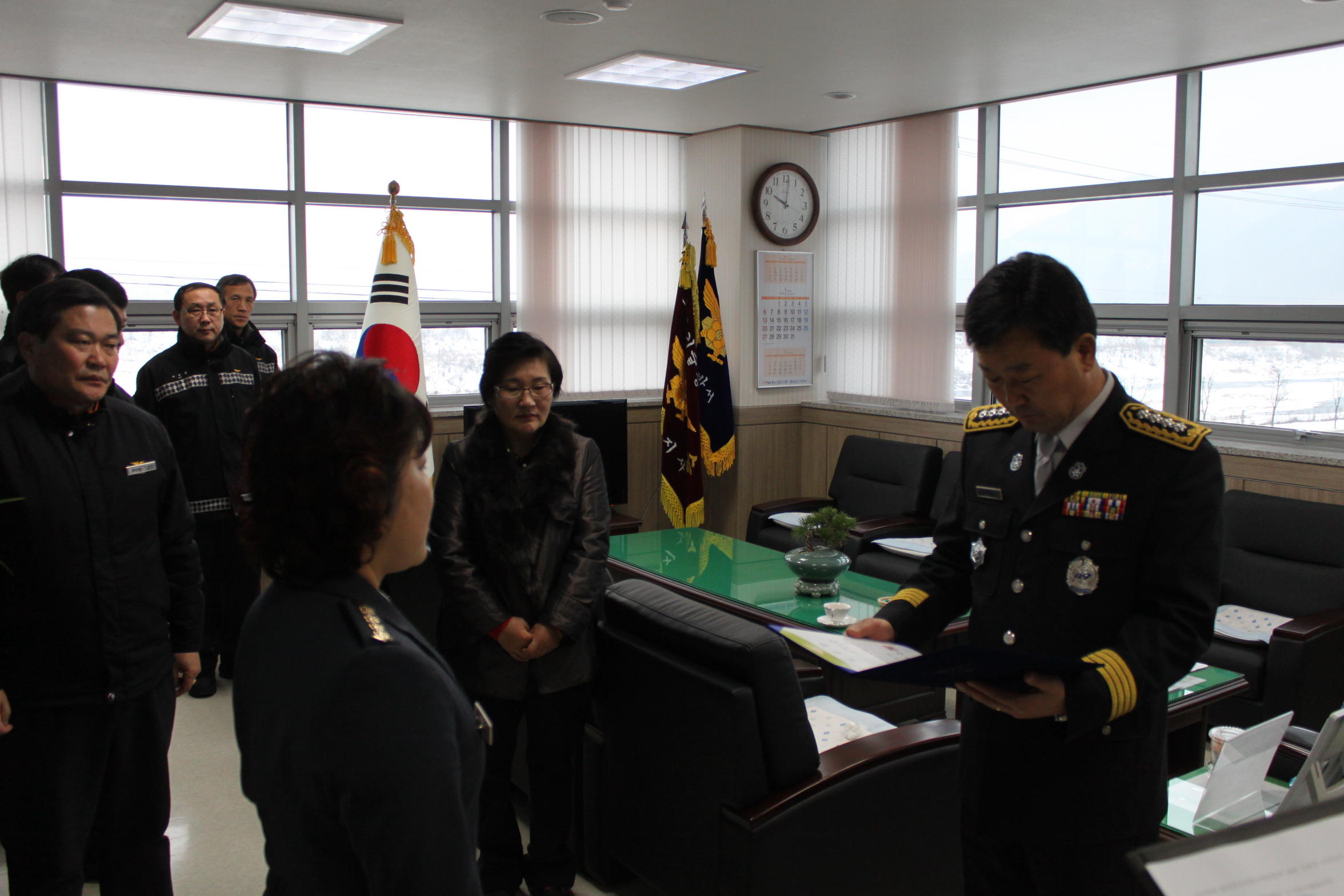 횡성소방서(서장 정은철)에서는 2013. 1. 17(목) 10:00, 2010. 1. 19 부로 대장에 임용 되어 3년간의 임기를 마치시고 대원들의 찬반 투표를 동한 과반수 동의로 연임하시는 횡성여성의용소방대 박선숙 대장 임용장 수여식을 가졌습니다. 새로이 시작되는 3년의 임기에도 소방발전을 위한 많은 활동 바랍니다^^ |