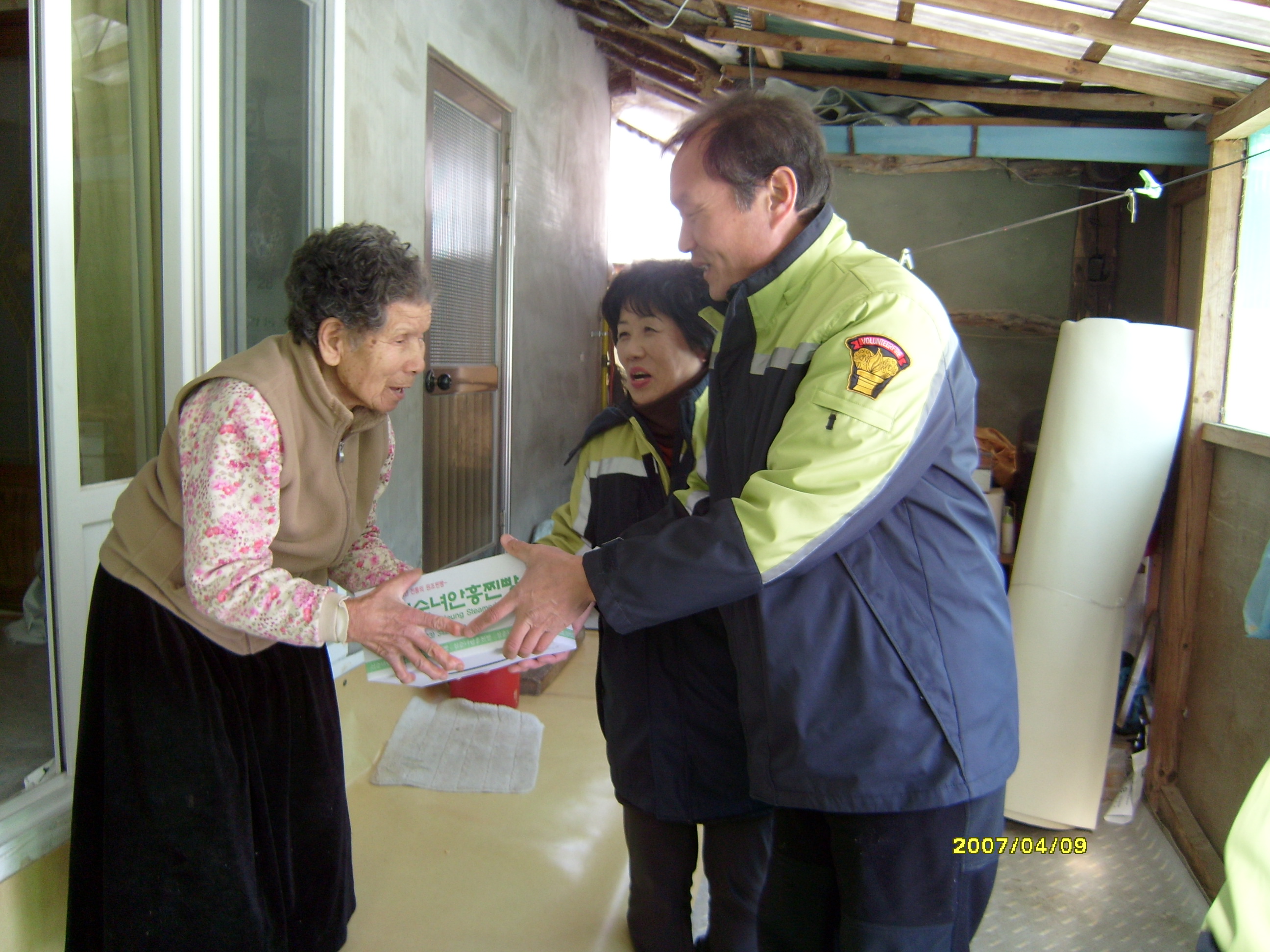 구정명절을 맞이하면서 독거어르신들에게 강림 남, 여의용소방대에서는