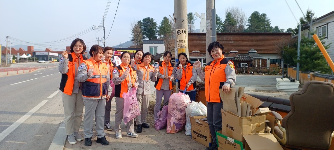 3월 24일 우천여성의용소방대는 우천면 새말탑 일대에서 환경정화활동을 실시하였습니다.