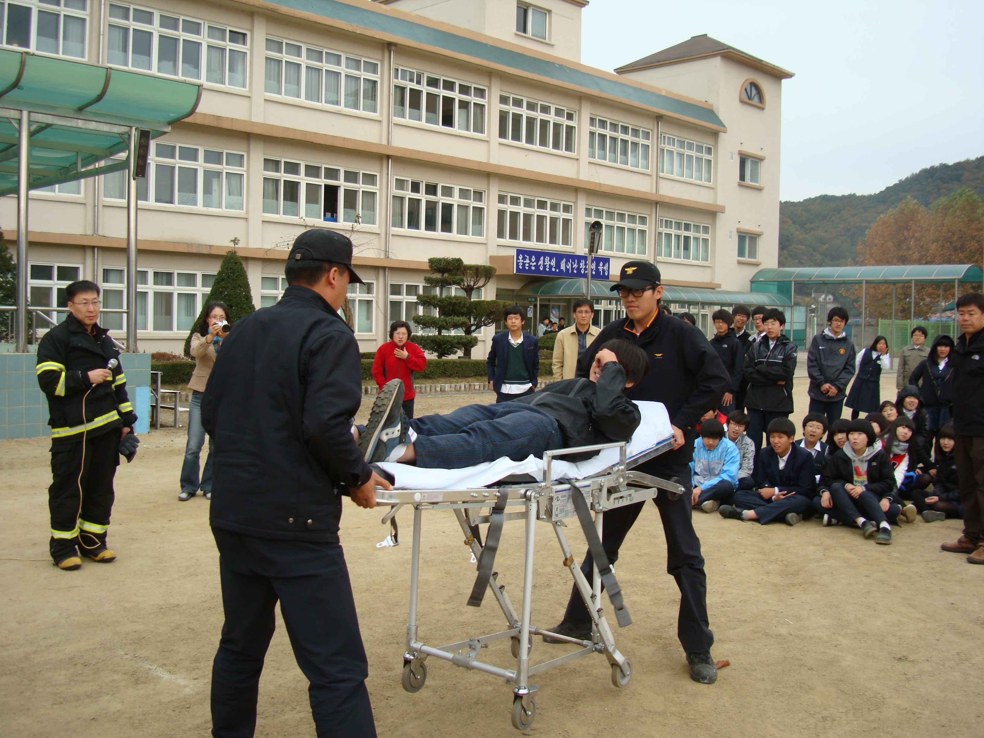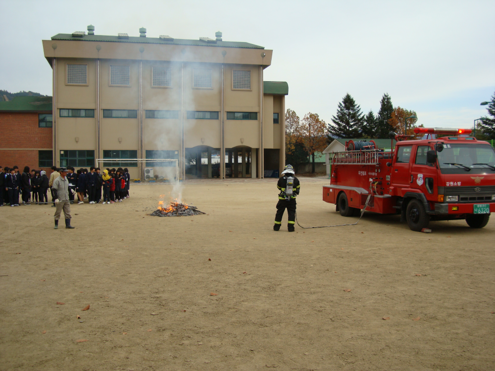이번 훈련은 화재발생 시 대피요령, 소화기 사용법, 응급환자 발생시 대처요령 등 실시하여 화재발생 시 학생들의 즉각적인 대처요령 및 인명대피 능력 향상을 목표로 훈련에 임하였습니다.