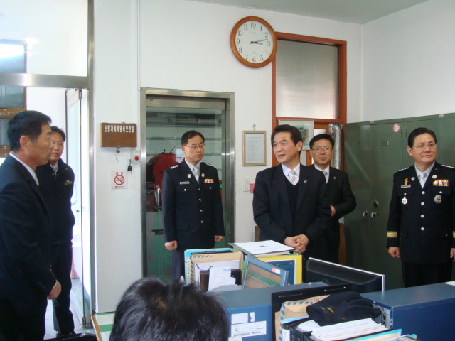 강원도 왕재섭소방본부장님이 우천119안전센터를 직접 방문하여 구제역 활동으로 지친대원들의 사기충전을 위하여 따뜻한 격려의 말씀과 금일봉을 주셨으며, 금년 신축예정인 센터 청사를 최고로 멋지게 지어 주실것을 약속 하셨습니다.