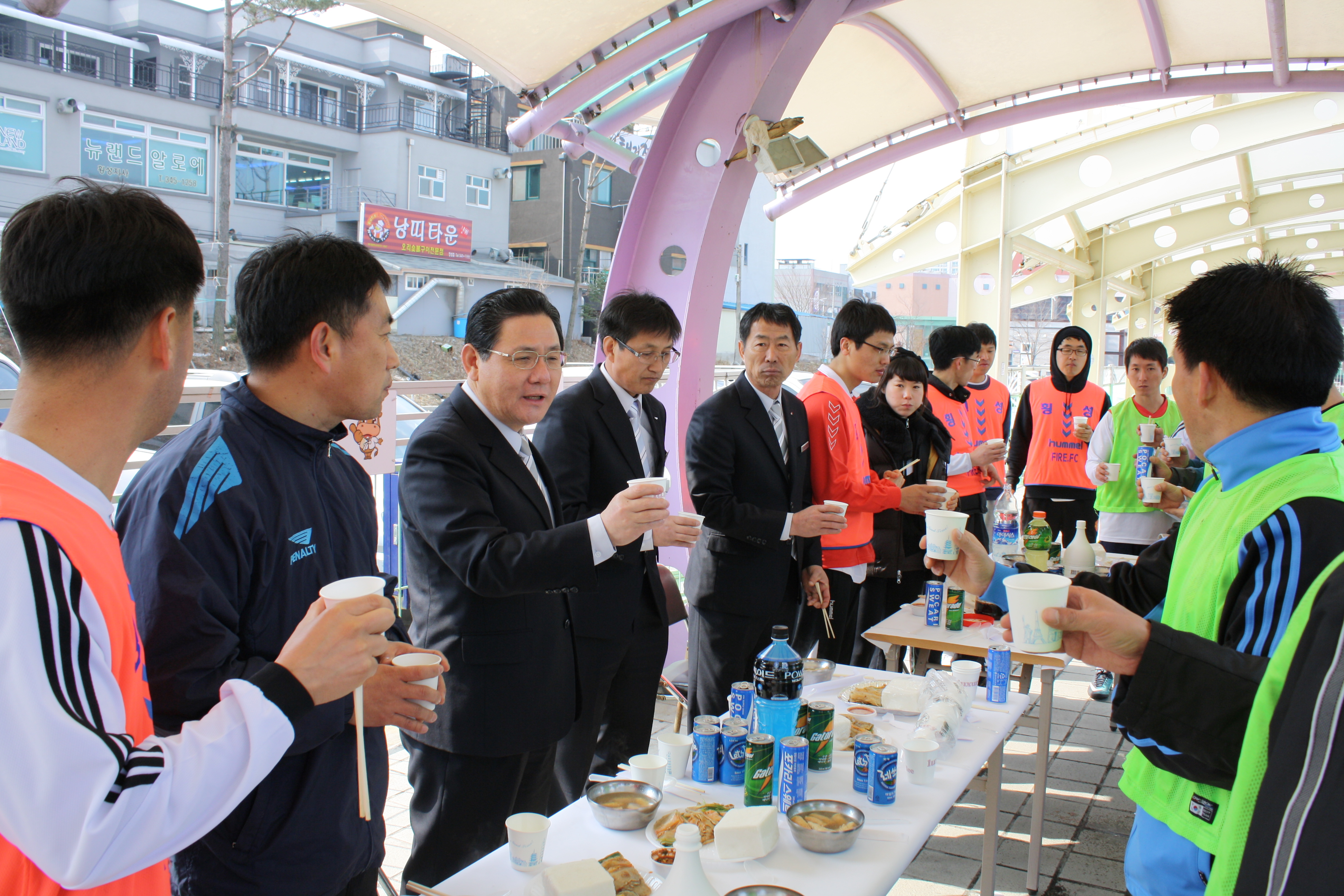 횡성소방서(서장 : 조근희)는 축구동호인들과 한자리에 모여 발대식 및 친선경기를 가졌다. 이번 경기를 통해 선-후배간의 우호증진 및 직원들의 실력을 테스트했다.
