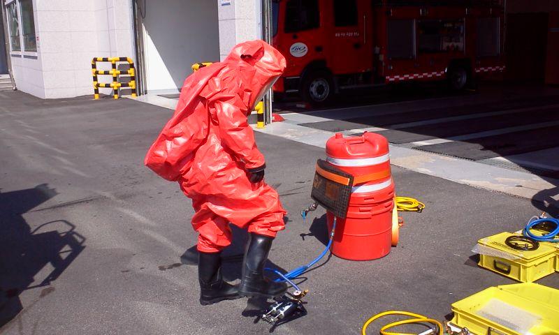 횡성소방서(서장 조근희)에서는 최근 일본 지진과 원전 폭발사고와 관련하여 혹시 발생할수 있는 화학사고 및 방사능 누출사고에 대비하기 위해 화학훈련을 실시하였다. 대장 지형기를 교관으로 당일 근무자 전원은 본서앞에서 방사능누출을 가정하여 누출방지창, 진공누출방지백,누출방지 배수백, 슬리브세트, 화학보호복 등을 이용해 언제 어디서든 화학사고 및 방사능 누출사고에 신속하고 정확히 대비하기 위한 훈련을 실시하였으며 앞으로도 계속적인 훈련을 해나갈 계획이다.