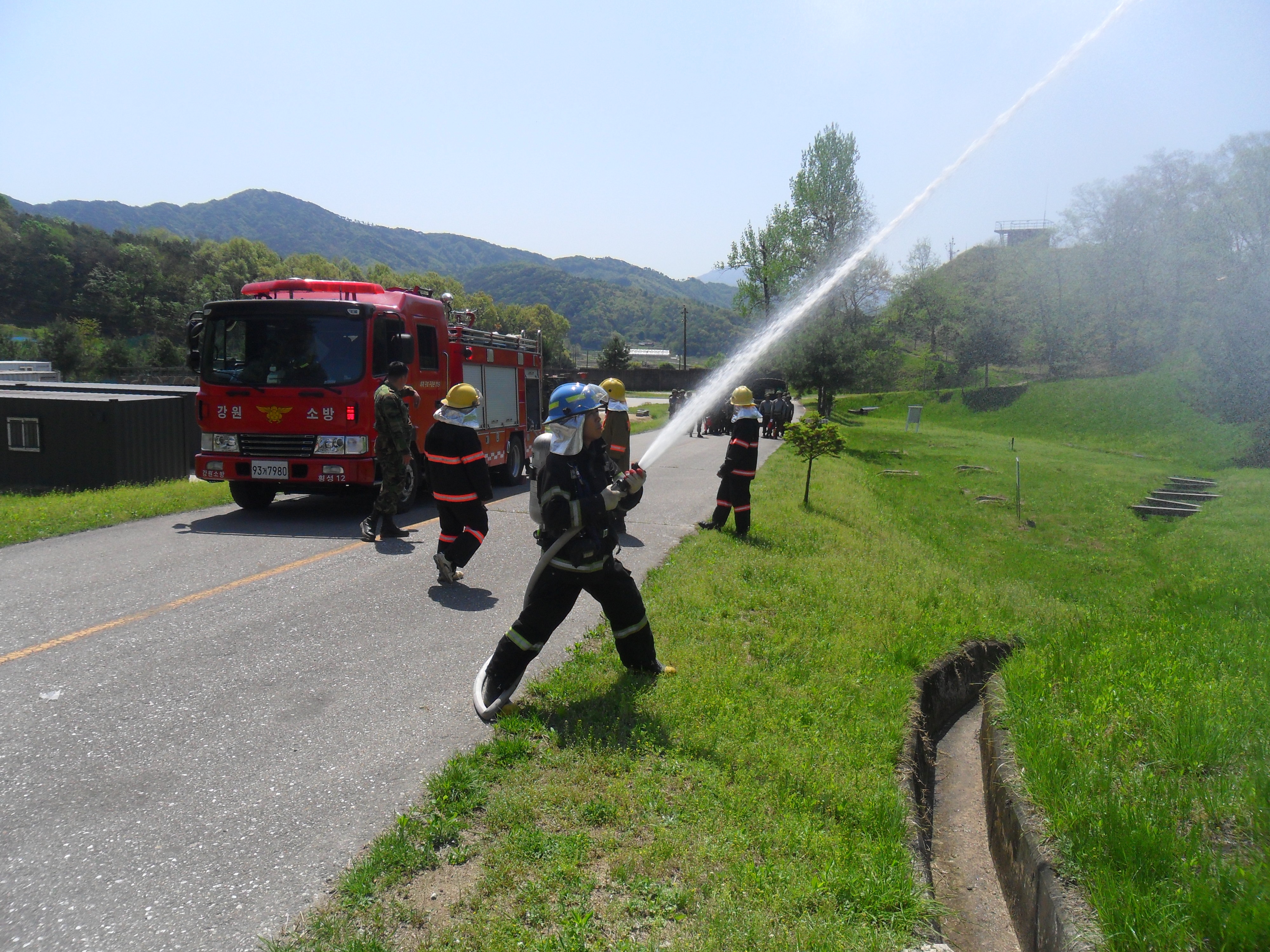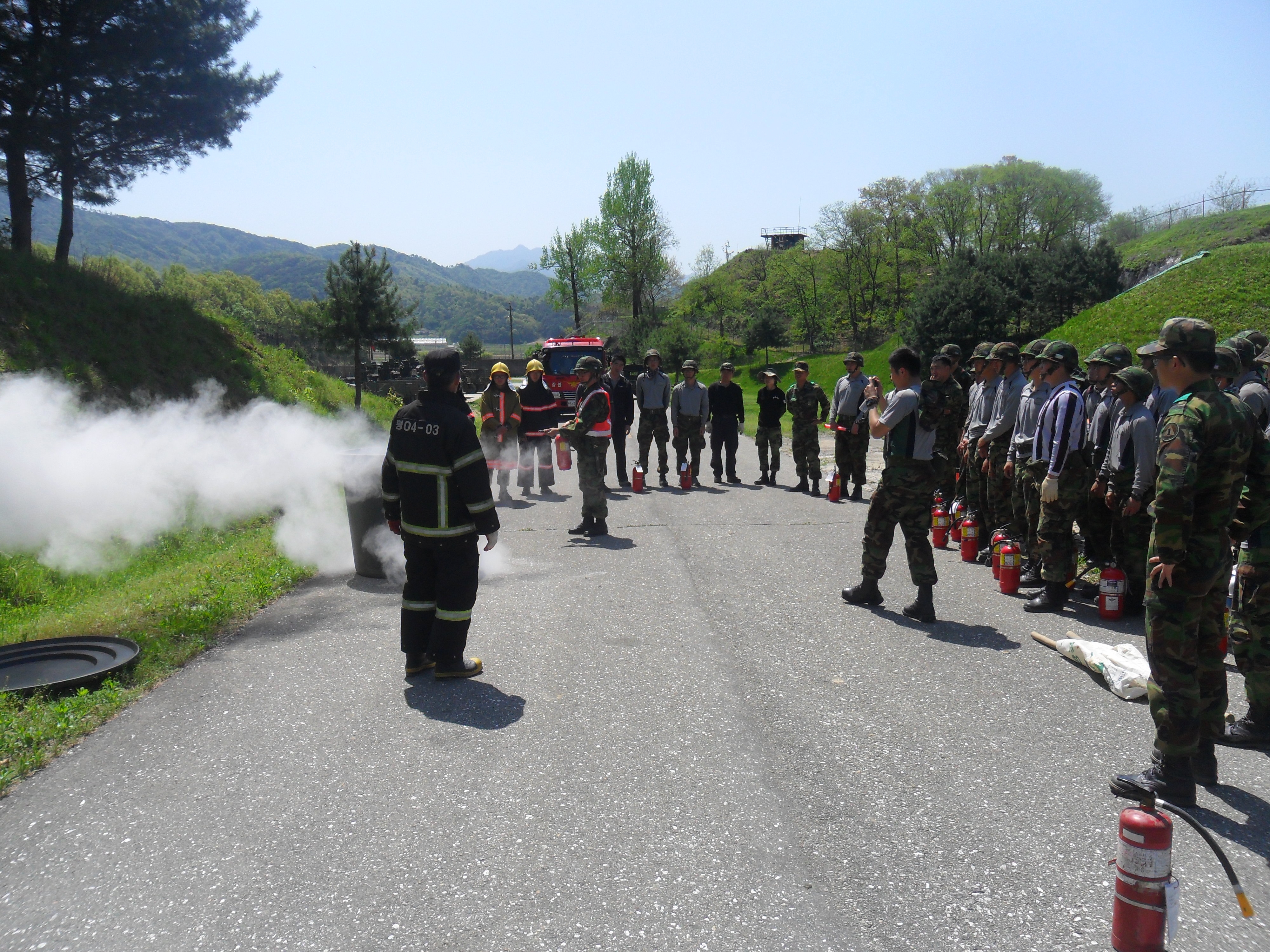 횡성소방서(서장 조근희) 횡성119안전센터에서는 금일(5.4) 10시경 횡성읍 묵계리 소재 제7193부대(탄약부대) 소방훈련을 실시하였다. 탄약부대 내 소방차량 담당자를 대상으로 소방차량 작동원리(PTO조작, 산불진화장비) 및 화재진압전술에 관하여 교육을 하였으며 탄약부대 내 산불을 가정하여 군부대와 합동으로 화재진압훈련을 실시하였다. 앞으로 지속적인 소방안전교육 및 훈련을 통하여 현장대응역량을 강화해 나갈 것이다.
