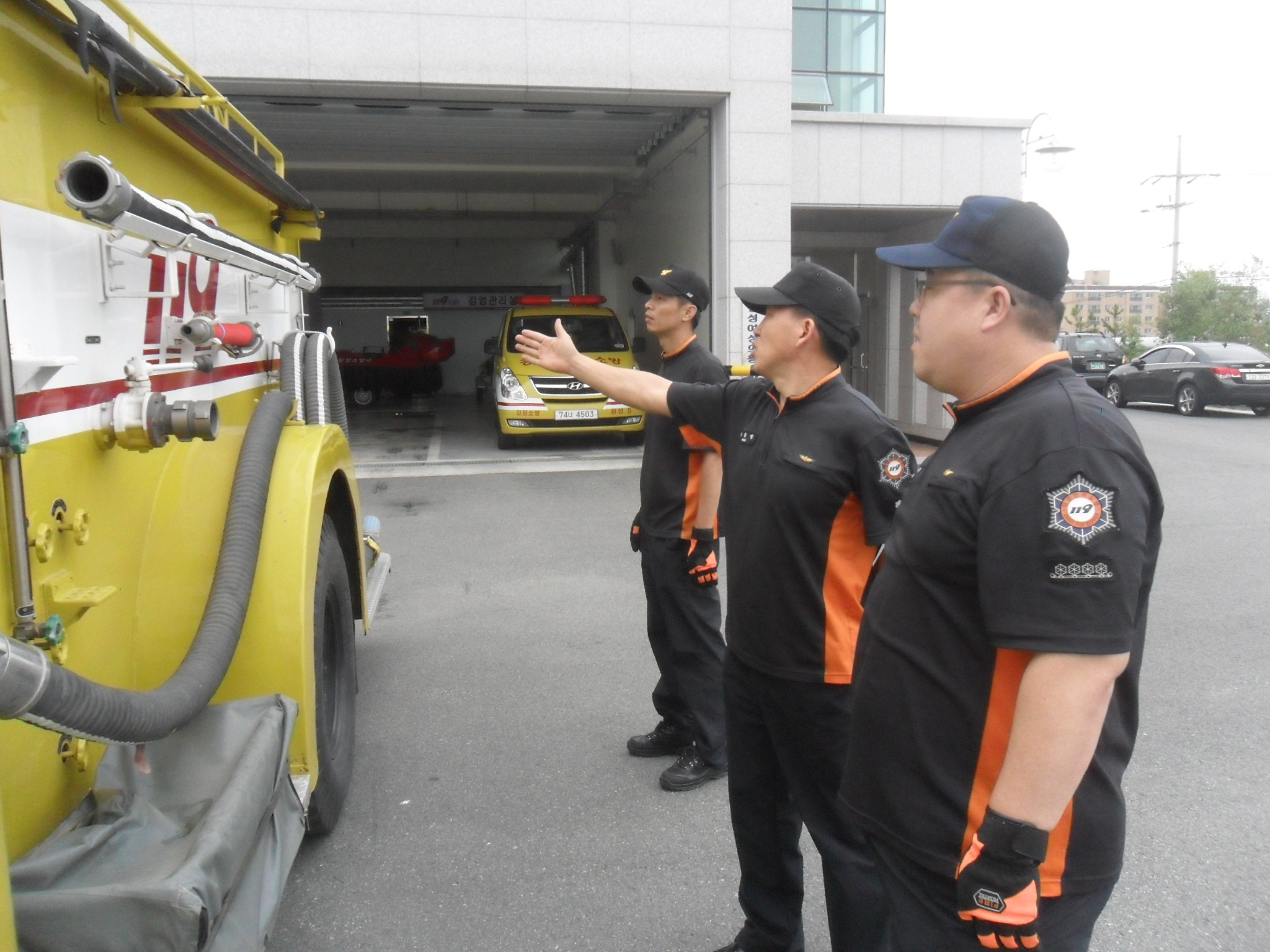 횡성소방서(서장 정은철)는 9월 13일 전정에서 화학차 조작 방법 및 방수 훈련을 실시하였습니다. 매번 다루는 장비이지만 반복 숙달을 위하여 끊임없이 훈련하고 배워 나가고 있습니다