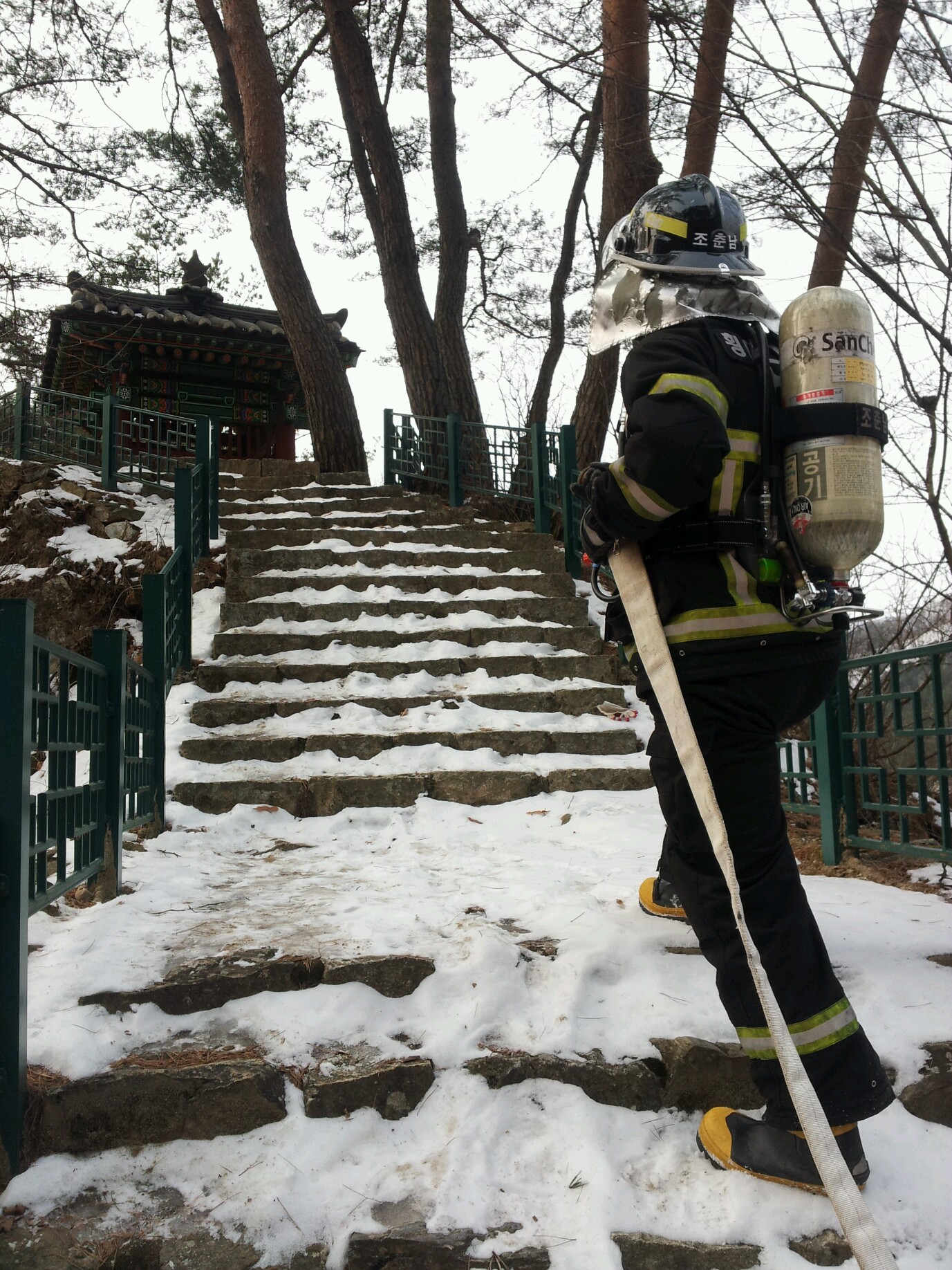 횡성소방서(서장 정은철) 우천119안전센터 강림지역대에서는 2013년 2월 25일 강림면 강림2리에 위치한 태종대를 대상으로 문화재 화재 대비 소방훈련을 실시하였습니다