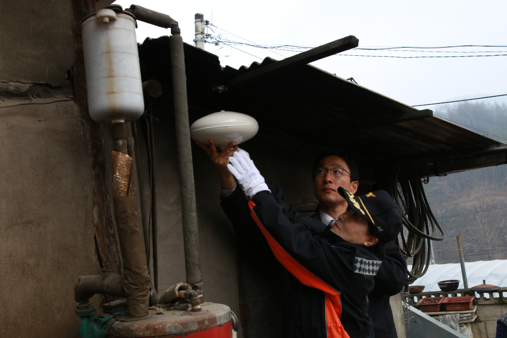횡성소방서(서장 원미숙)는 화목보일러가 설치된 홀로어르신가구 10가구에 대하여 안전한 겨울나기를 할 수 있도록 자동확산소화기를 달아주는 한해 마무리 깜짝 이벤트 행사를 가졌다.