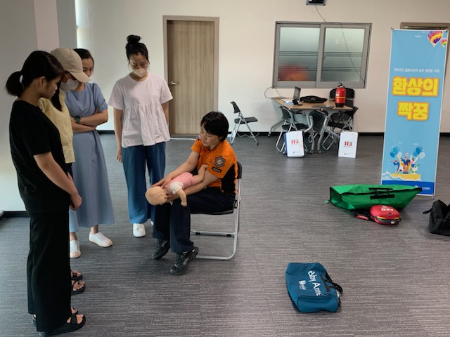 이번 교육은 ▲ 화재 발생 시 대피요령 ▲ 심폐소생술 및 응급처치 요령 ▲ 119신고방법 교육 ▲ 등의 순서로 이뤄졌습니다.
