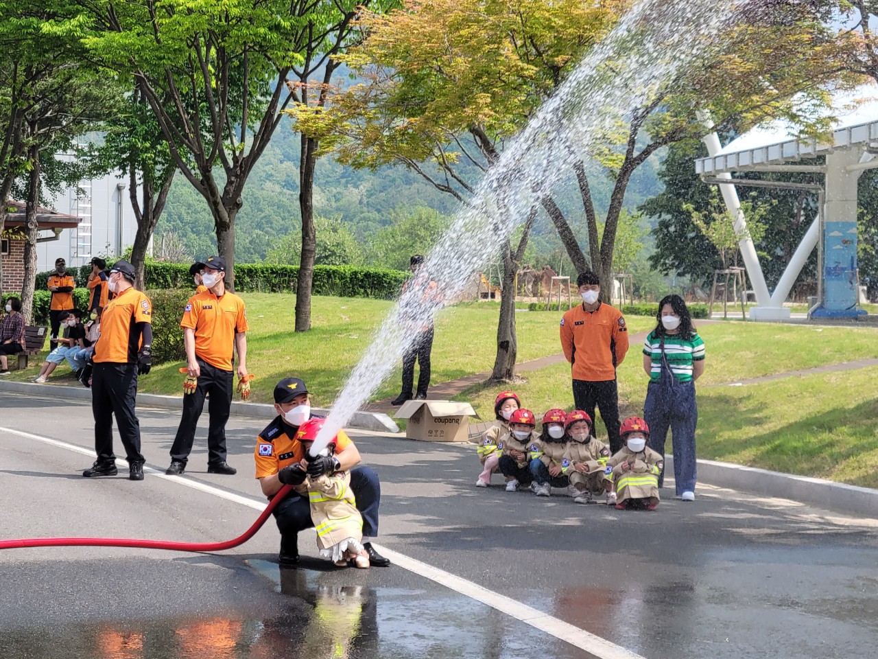 교육은 지진 등 재난 상황에서의 대피방법, 심폐소생술 및 119신고방법, 소방호스 방수체험 등 각 팀을 구성해 로테이션 방식으로 돌아가며 진행됐습니다.