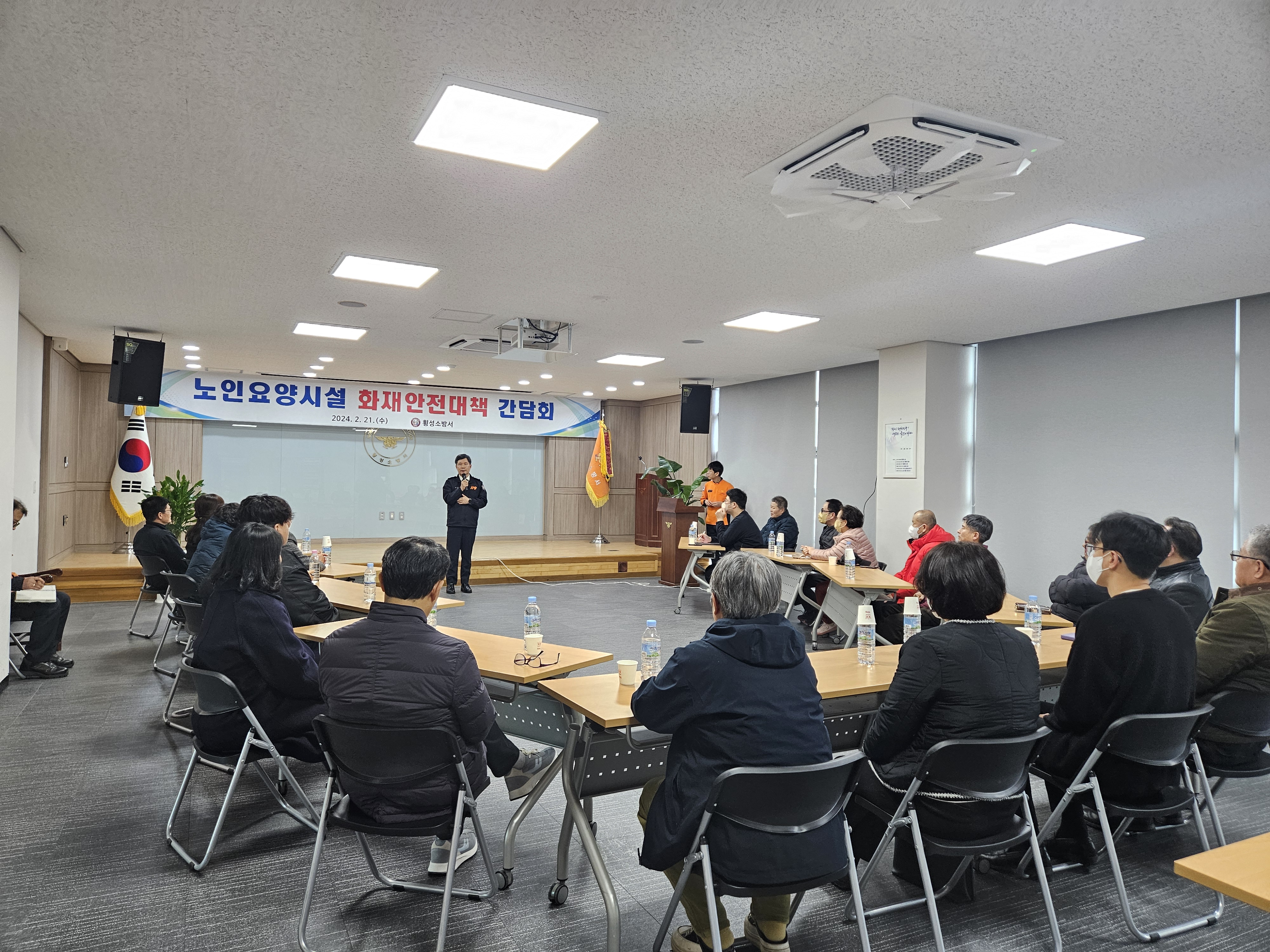 횡성소방서는 지난 21일 대회의실에서 노인요양시설 관계자분들을 초대하여 화재안전대책 간담회를 실시하였습니다!!