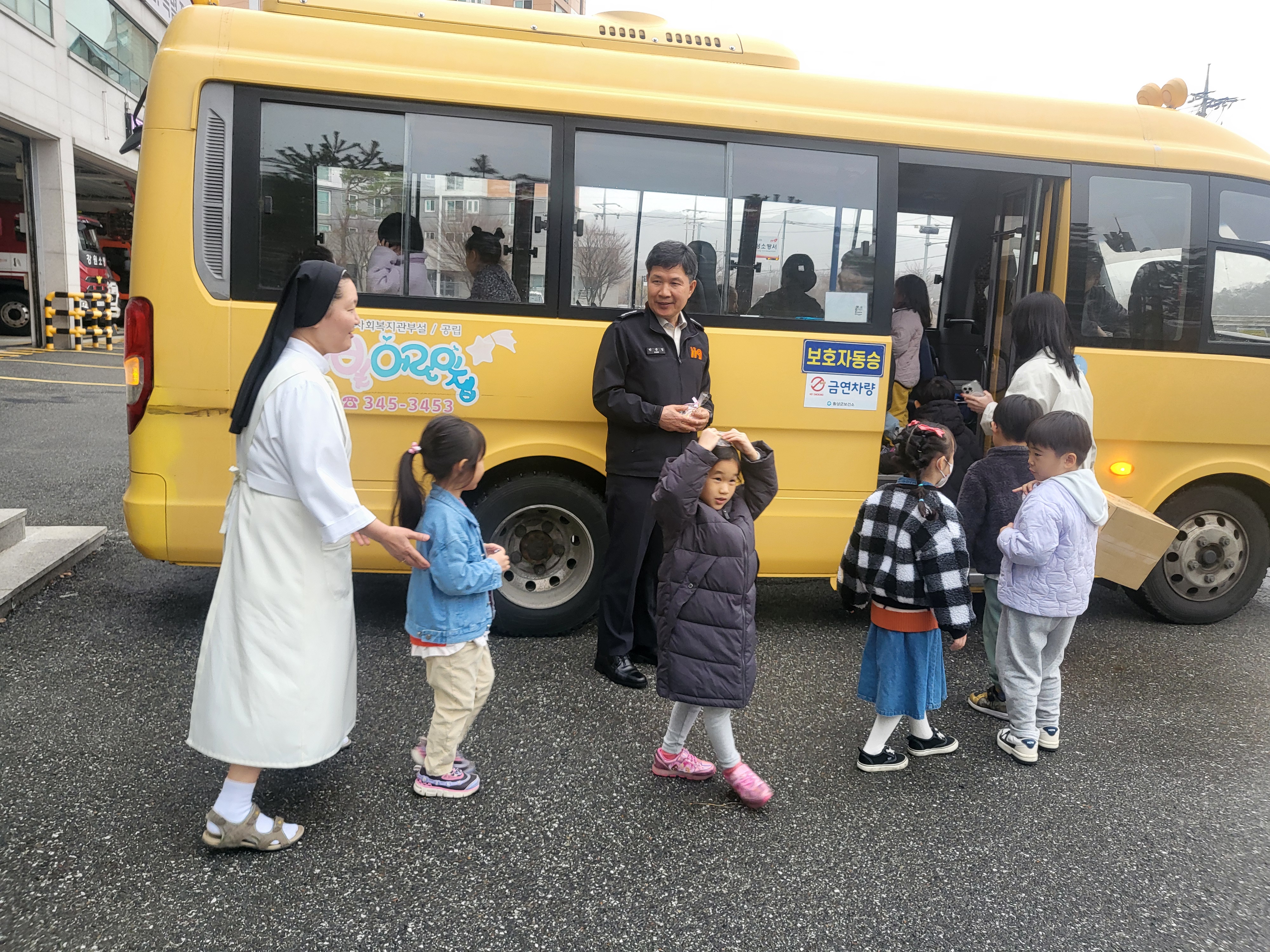 횡성에 있는 큰빛어린이집 태양반 친구들이 부활절을 기념하여 직접 그림을 그림 계란을 들고 횡성소방서에 방문하였습니다!