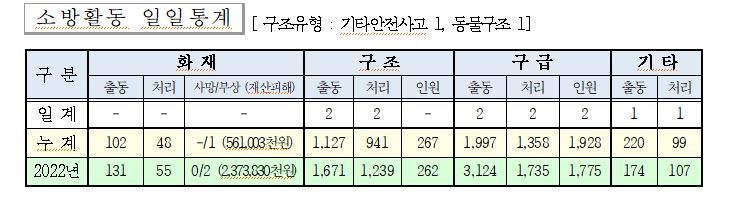 ○ 구조 2건(기타안전사고 1, 동물구조 1)