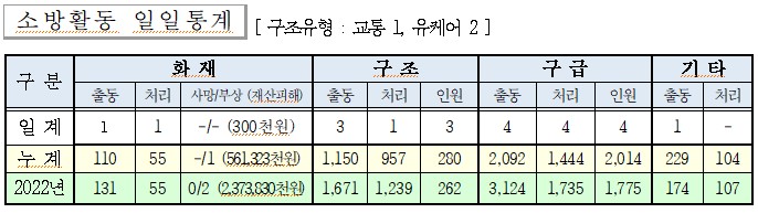 ○ 구조 3건(교통 1, 유케어 2)