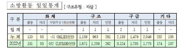 ○ 구조 1건(자살 1)