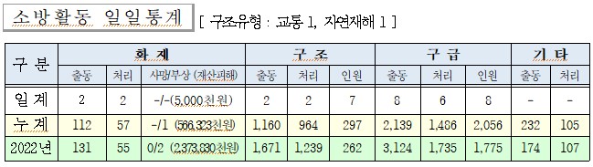 ○ 구조 2건(교통 1, 자연재해 1)
