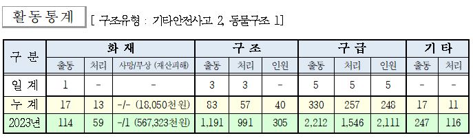 ○ 구조 3건(기타안전사고 2, 동물구조 1)