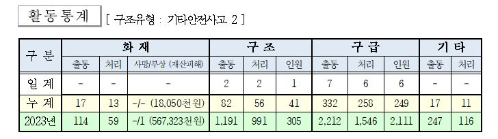 ○ 구조 2건(기타안전사고 2)