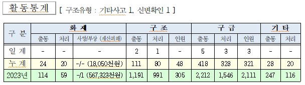 ○ 구조 2건(기타사고 1, 신변확인 1)