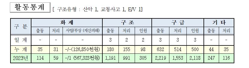 ○ 구조 3건( 산악 1, 교통사고 1, E/V 1)