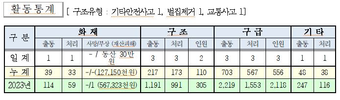 ○ 구조 3건(기타안전사고 1, 벌집제거 1, 교통사고 1)