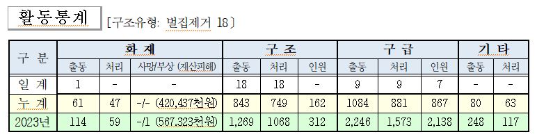 ○ 구조 18건(벌집제거 18)