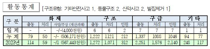 ○ 구조 6건(기타안전사고 1, 동물구조 2, 산악사고 2, 벌집제거 1)